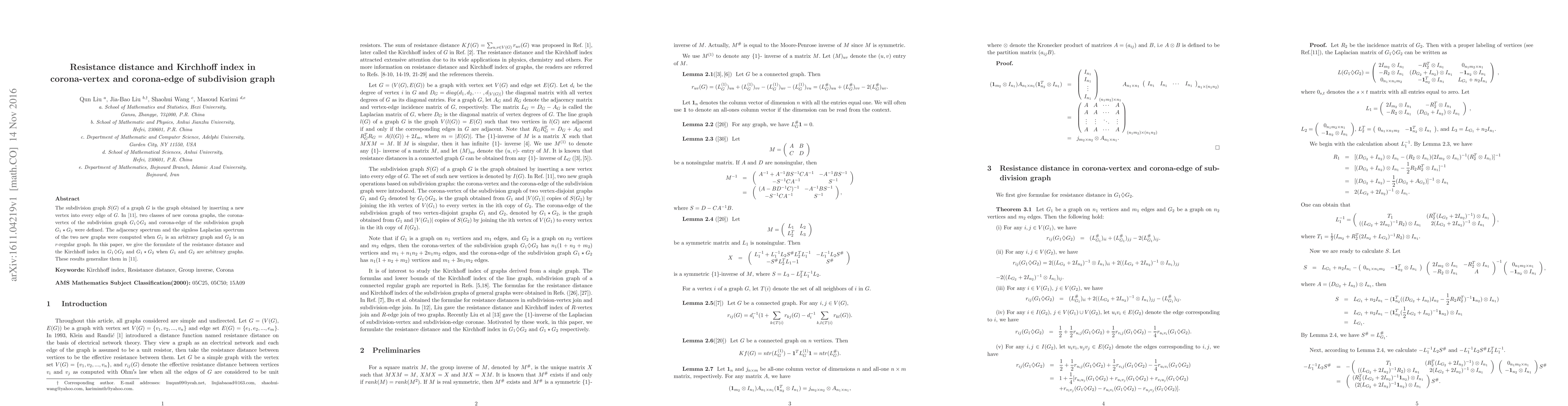 This work extends previous findings by PL [11] to arbitrary graphs G1 and G2, generalizing the results and providing a more comprehensive understanding of resistance distance and Kirchhoff index in subdivision graphs.