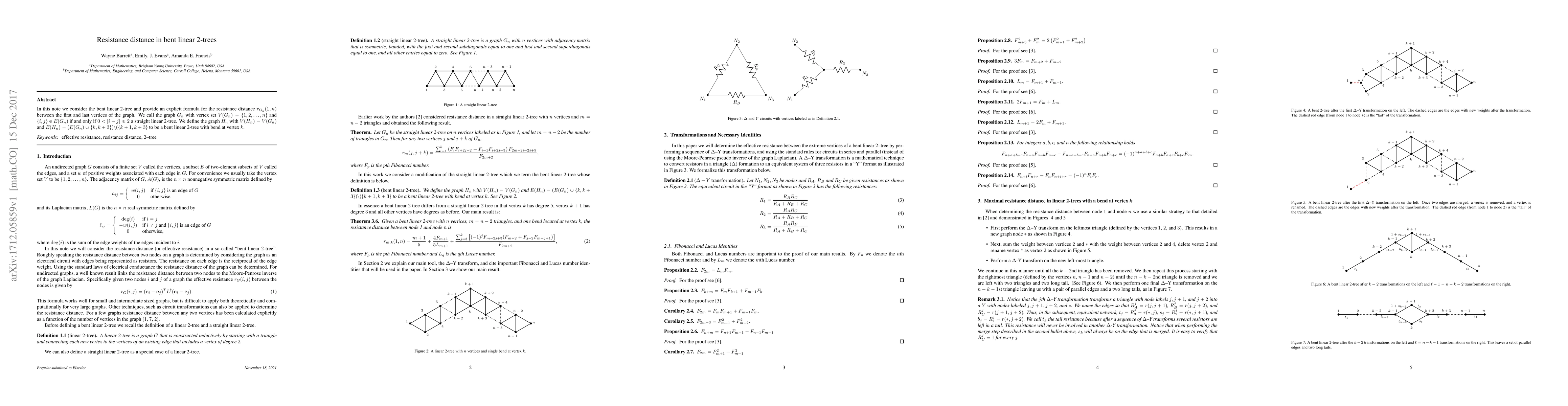 Researchers provide an explicit formula for the resistance distance between the first and last vertices of bent linear 2-trees, a type of graph network.