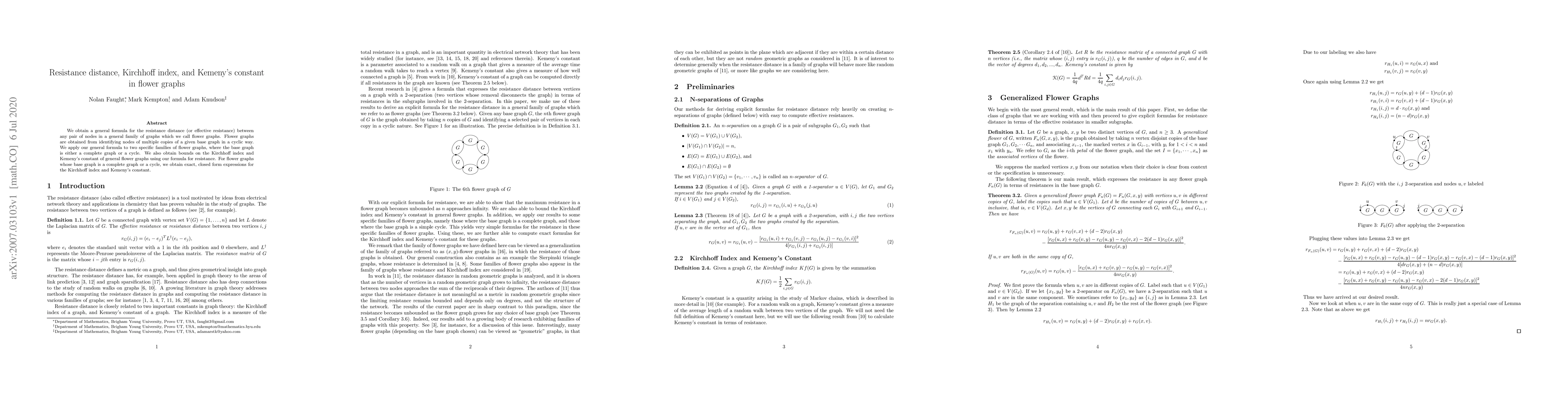 We obtain a general formula for the resistance distance (or effective resistance) between any pair of nodes in a general family of graphs which we call flower graphs. Flower graphs are obtained from identifying nodes of multiple copies of a given base graph in a cyclic way. We apply our general formula to two specific families of flower graphs, where the base graph is either a complete graph or a cycle. We also obtain bounds on the Kirchhoff index and Kemeny's constant of general flower graphs using our formula for resistance. For flower graphs whose base graph is a complete graph or a cycle, we obtain exact, closed form expressions for the Kirchhoff index and Kemeny's constant.