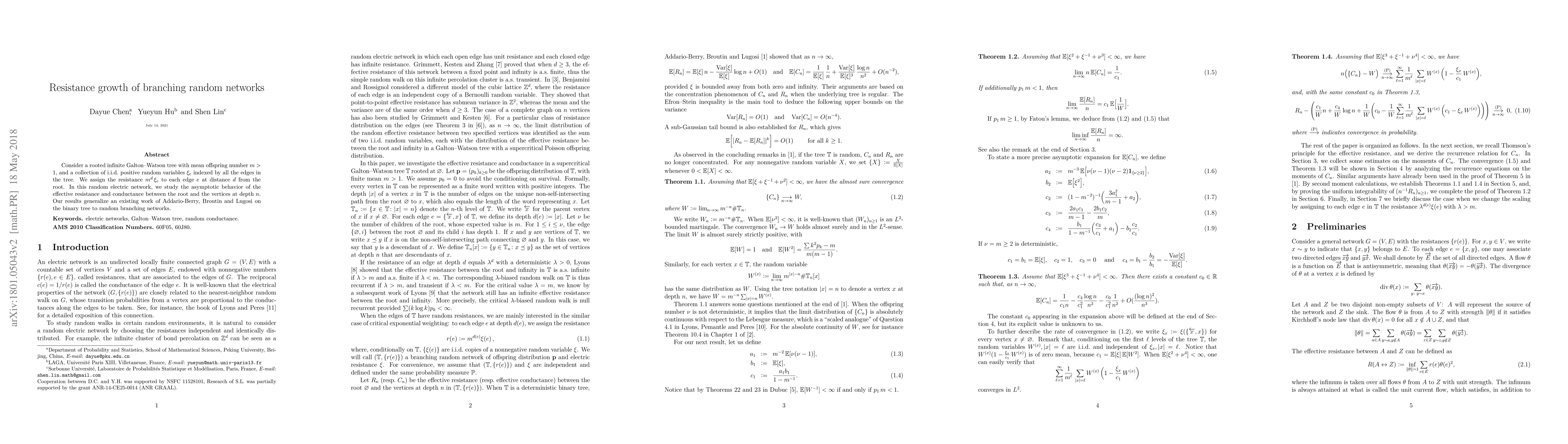 Consider a rooted infinite Galton-Watson tree with mean offspring number $m>1$, and a collection of i.i.d. positive random variables $\xi_e$ indexed by all the edges in the tree. We assign the resistance $m^d \xi_e$ to each edge $e$ at distance $d$ from the root. In this random electric network, we study the asymptotic behavior of the effective resistance and conductance between the root and the vertices at depth $n$. Our results generalize an existing work of Addario-Berry, Broutin and Lugosi on the binary tree to random branching networks.
