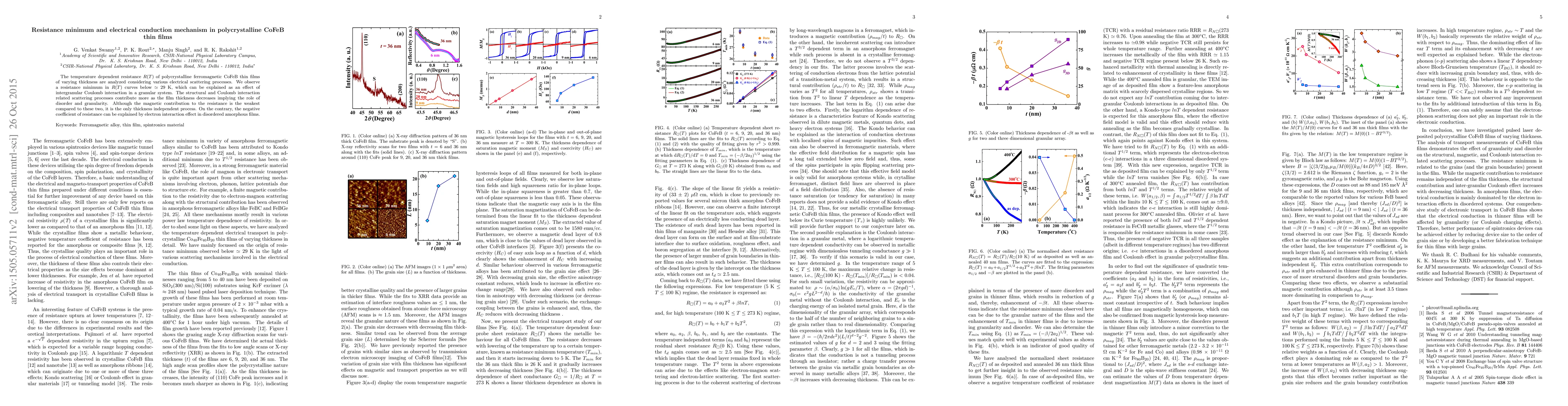 This study investigates the temperature-dependent resistance of polycrystalline CoFeB thin films, revealing a resistance minimum below 29 K due to intergranular Coulomb interaction. As film thickness decreases, structural and Coulomb scattering dominate, highlighting the influence of disorder and granularity, while magnetic contribution remains thickness independent.