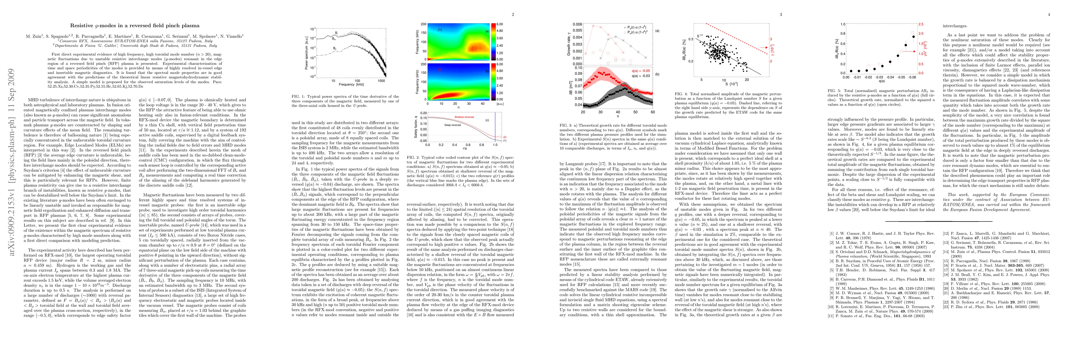 This paper presents experimental evidence of high-frequency resistive g-modes in a reversed field pinch plasma, characterized by high toroidal mode numbers. The study confirms theoretical predictions of their stability and proposes a model for their saturation levels.