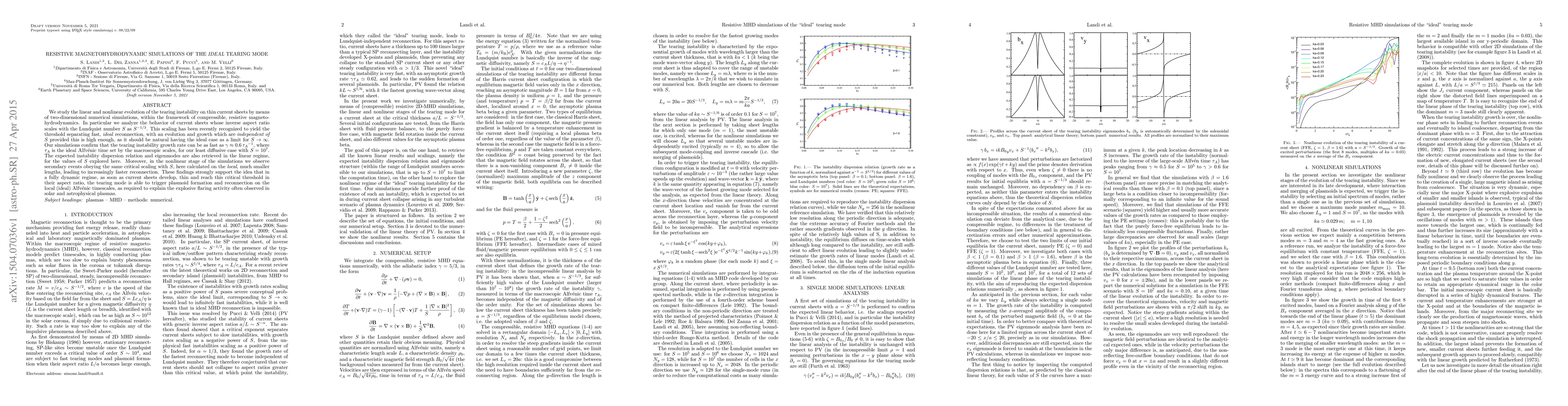 This paper investigates the evolution of the tearing magnetohydrodynamic (MHD) instability in thin current sheets using resistive MHD simulations. The study finds that when the inverse aspect ratio scales with the Lundquist number as $S^{-1/3}$, the tearing mode can trigger fast reconnection, independent of $S$ for high values, supporting the idea of ideal reconnection.