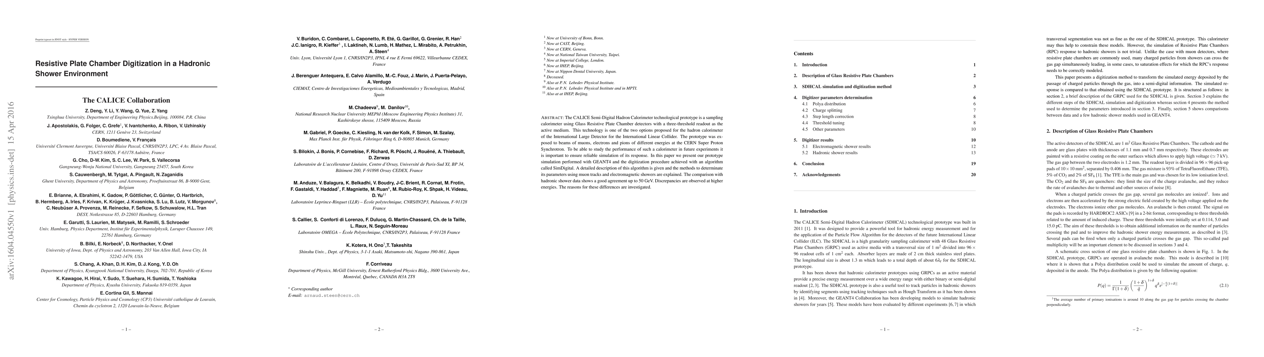 This paper details the simulation and digitization of a Glass Resistive Plate Chamber-based prototype calorimeter, used in the CALICE Semi-Digital Hadron Calorimeter. The GEANT4 simulation and SimDigital algorithm show good agreement with hadronic shower data up to 50 GeV, though discrepancies arise at higher energies, prompting further investigation.