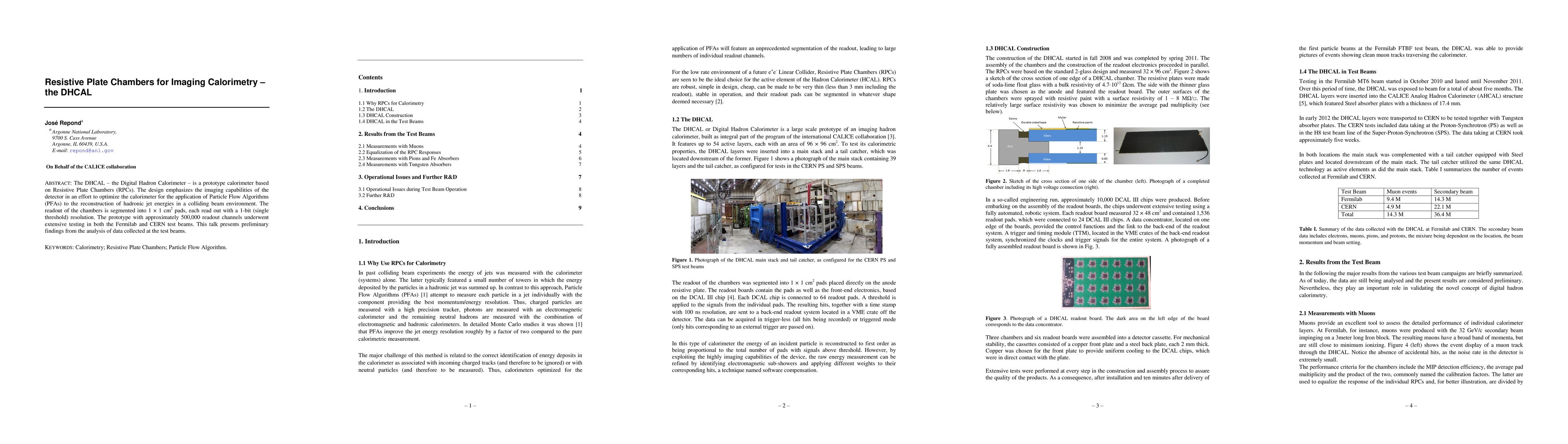The DHCAL, a prototype digital hadron calorimeter using Resistive Plate Chambers, aims to optimize imaging for Particle Flow Algorithms in hadronic jet energy reconstruction. Preliminary results from extensive testing at Fermilab and CERN show promising imaging capabilities.