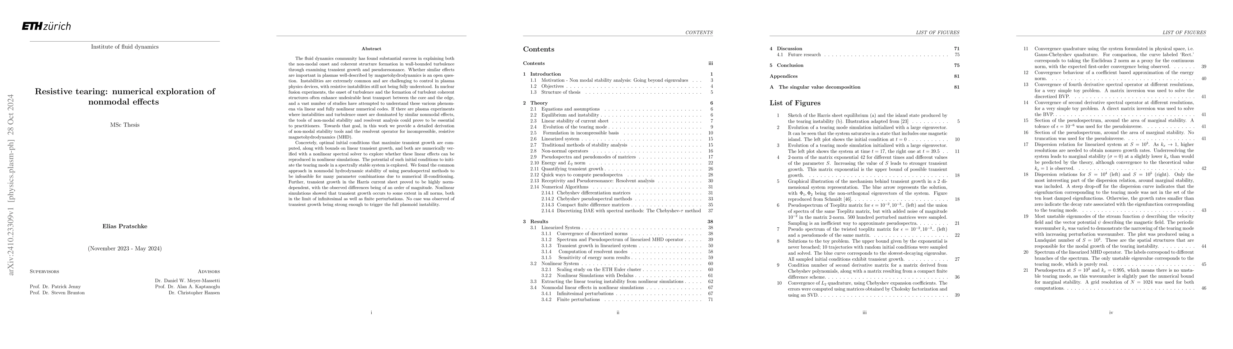 This research develops non-modal stability tools for resistive magnetohydrodynamics (MHD) to explore transient growth effects in plasma turbulence, showing that while transient growth can occur in various norms, it does not trigger full plasmoid instability. The study also highlights numerical challenges with pseudospectral methods in this context.