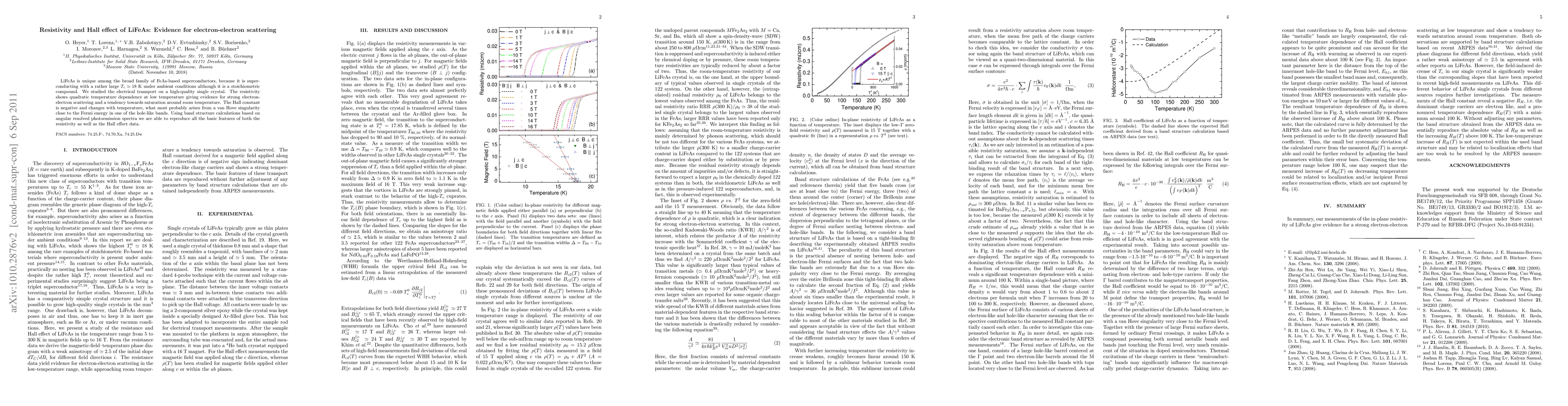 Researchers studied LiFeAs to understand its superconducting properties, finding evidence for electron-electron scattering that affects resistivity and Hall effect measurements. Their calculations using band structure data successfully reproduced the observed phenomena.