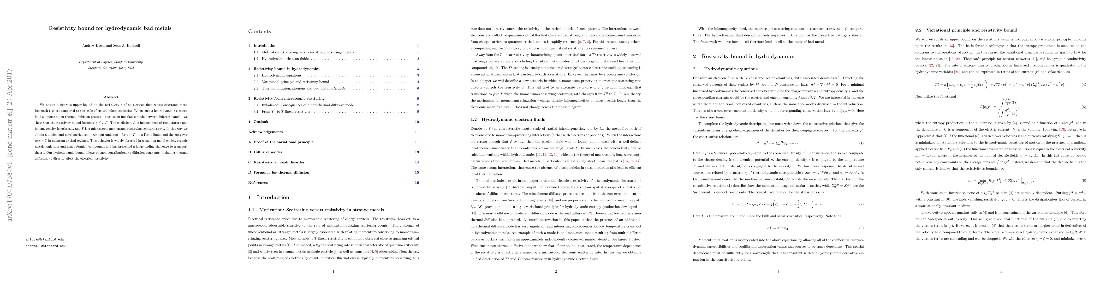 The paper presents a hydrodynamic theory that provides a resistivity bound, incorporating non-thermal diffusion processes and phonon contributions, offering a unified explanation for resistivity behavior in various bad metal systems.