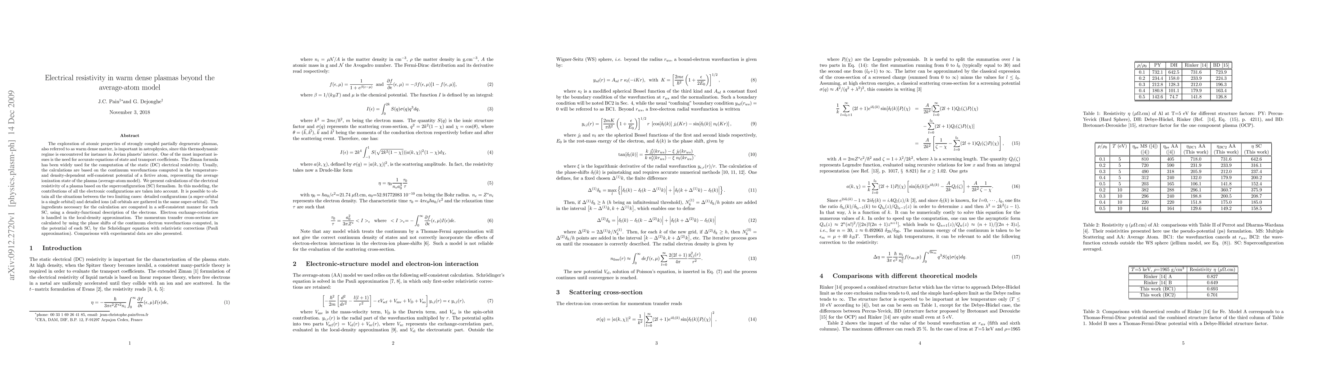 The exploration of atomic properties of strongly coupled partially degenerate plasmas, also referred to as warm dense matter, is important in astrophysics, since this thermodynamic regime is encountered for instance in Jovian planets' interior. One of the most important issues is the need for accurate equations of state and transport coefficients. The Ziman formula has been widely used for the computation of the static (DC) electrical resistivity. Usually, the calculations are based on the continuum wavefunctions computed in the temperature and density-dependent self-consistent potential of a fictive atom, representing the average ionization state of the plasma (average-atom model). We present calculations of the electrical resistivity of a plasma based on the superconfiguration (SC) formalism. In this modeling, the contributions of all the electronic configurations are taken into account. It is possible to obtain all the situations between the two limiting cases: detailed configurations (a super-orbital is a single orbital) and detailed ions (all orbitals are gathered in the same super-orbital). The ingredients necessary for the calculation are computed in a self-consistent manner for each SC, using a density-functional description of the electrons. Electron exchange-correlation is handled in the local-density approximation. The momentum transfer cross-sections are calculated by using the phase shifts of the continuum electron wavefunctions computed, in the potential of each SC, by the Schroedinger equation with relativistic corrections (Pauli approximation). Comparisons with experimental data are also presented.