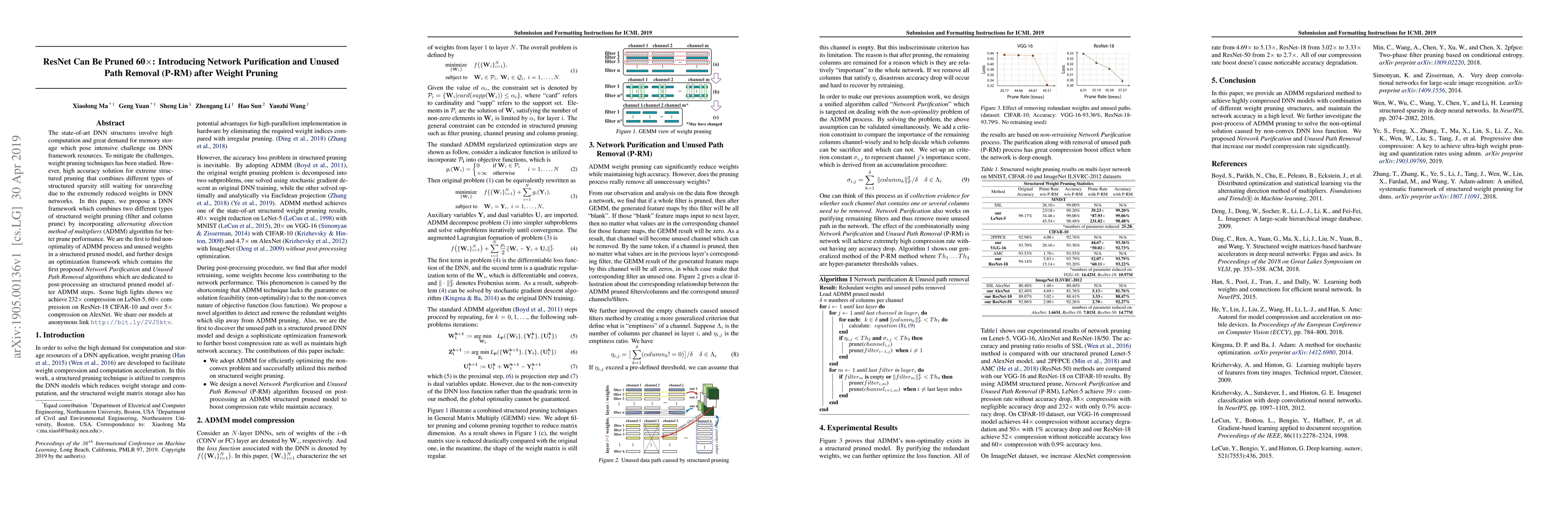 Researchers propose a novel method to prune neural networks called Network Purification and Unused Path Removal (P-RM), which achieves 232x compression on LeNet-5, 60x compression on ResNet-18, and over 5x compression on AlexNet.