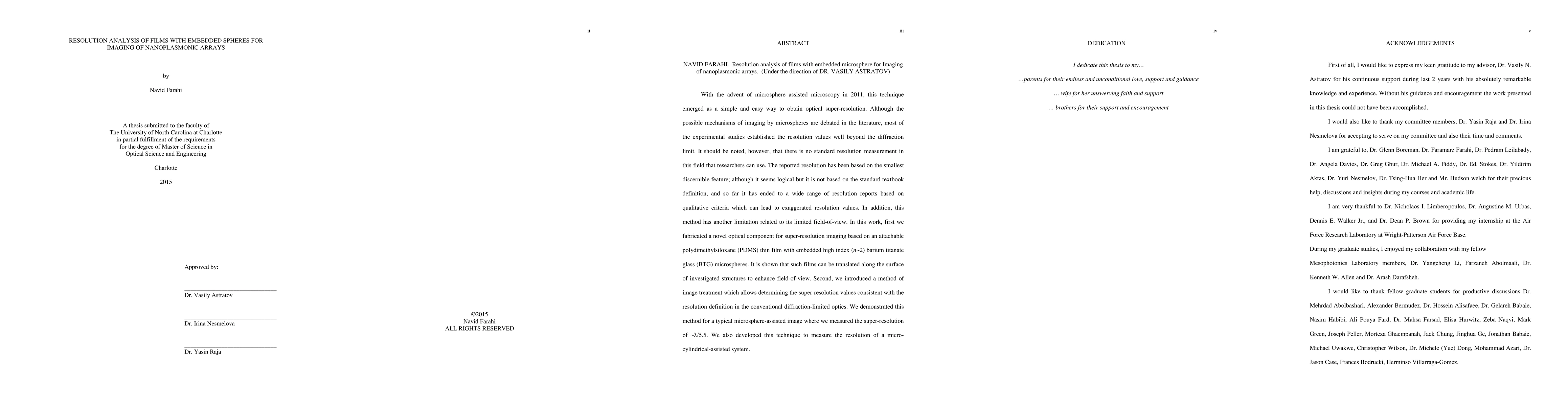 This paper presents a novel PDMS thin film embedded with high index BTG microspheres for enhanced super-resolution imaging of nanoplasmonic arrays, addressing limitations in field-of-view. It also introduces a standardized method for measuring super-resolution values consistent with conventional optics, demonstrating a resolution of ~λ/5.5.