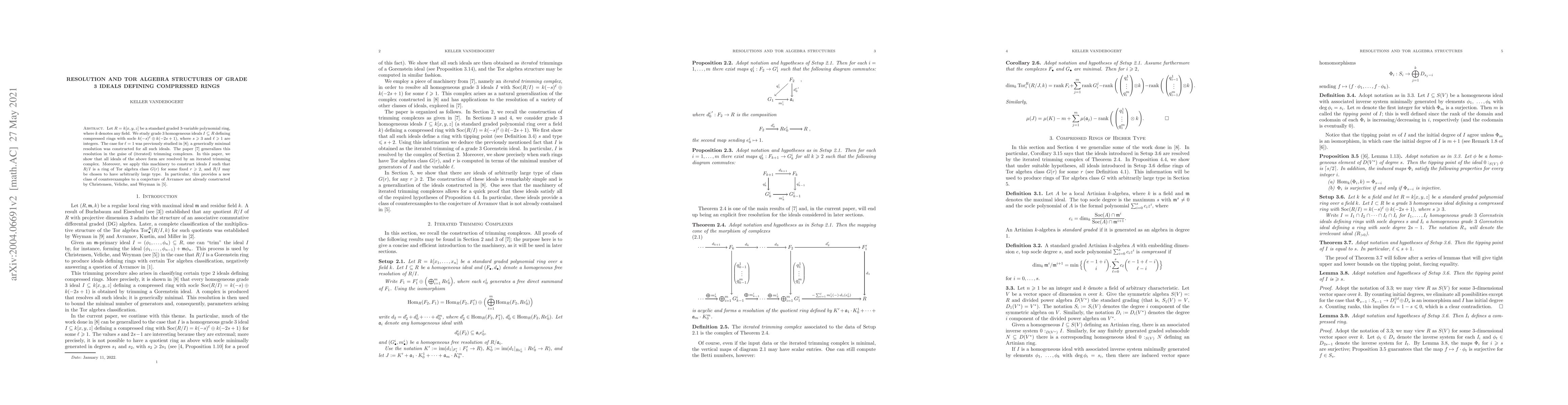 Let $R=k[x,y,z]$ be a standard graded $3$-variable polynomial ring, where $k$ denotes any field. We study grade $3$ homogeneous ideals $I \subseteq R$ defining compressed rings with socle $k(-s)^{\ell} \oplus k(-2s+1)$, where $s \geq3$ and $\ell \geq 1$ are integers. The case for $\ell =1$ was studied in a previous paper by the author; a generically minimal resolution was constructed for all such ideals. More recently, this resolution is generalized in the guise of (iterated) trimming complexes. In this paper, we show that all ideals of the above form are resolved by an iterated trimming complex. Moreover, we apply this machinery to construct ideals $I$ such that $R/I$ is a ring of Tor algebra class $G (r)$ for some fixed $r \geq2$, and $R/I$ may be chosen to have arbitrarily large type. In particular, this provides a new class of counterexamples to a conjecture of Avramov not already constructed by Christensen, Veliche, and Weyman.