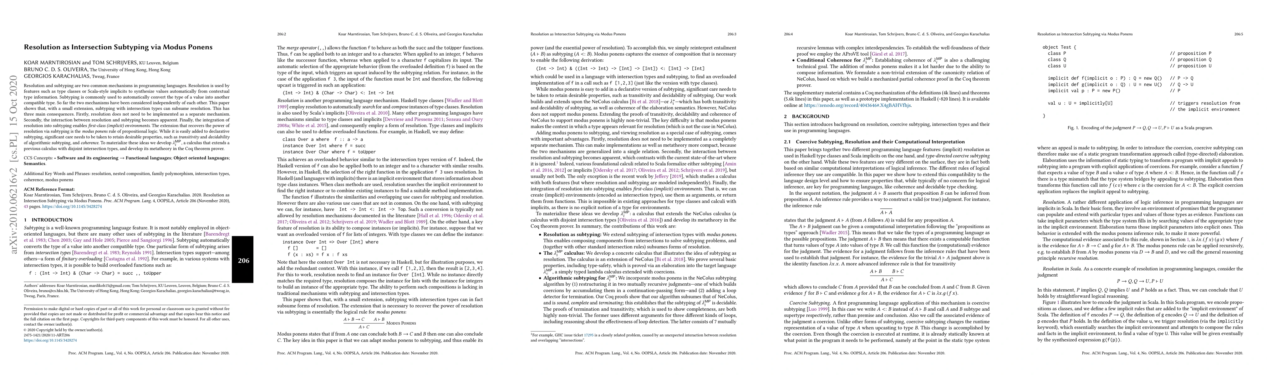 This paper demonstrates that subtyping with intersection types can subsume the mechanism of resolution, traditionally used in type classes and implicits, by integrating the modus ponens rule. The integration leads to a unified treatment of resolution and subtyping, facilitating first-class implicit environments while preserving properties like transitivity and decidability.