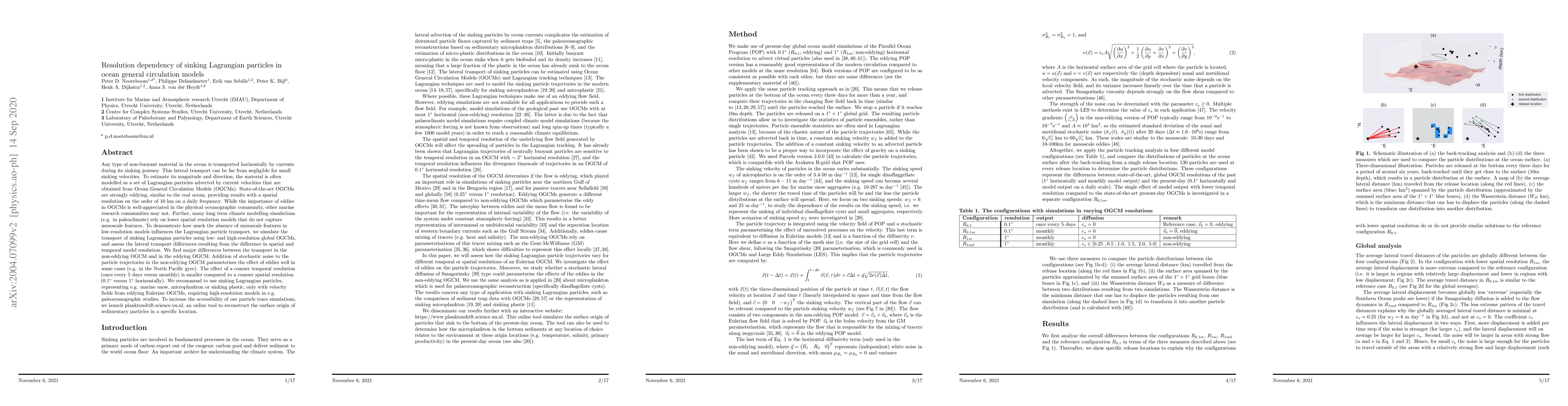 This study investigates the impact of spatial and temporal resolution in Ocean General Circulation Models (OGCMs) on the transport of sinking Lagrangian particles. It finds significant differences in particle transport between high-resolution eddying and low-resolution non-eddying models, emphasizing the necessity of high-resolution models for accurate simulations in paleoceanographic studies.