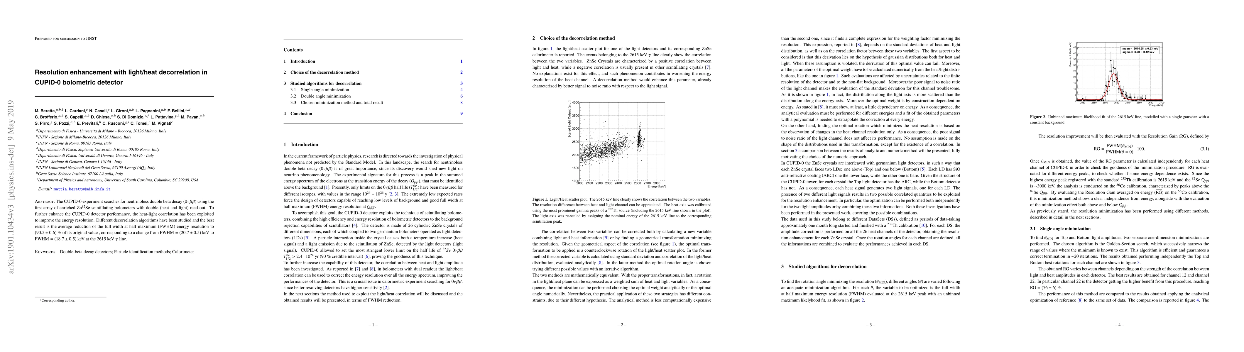 The CUPID-0 experiment improves energy resolution in a neutrinoless double beta decay detector by decorrelating heat and light signals, reducing full width at half maximum (FWHM) energy resolution by 90.5%.