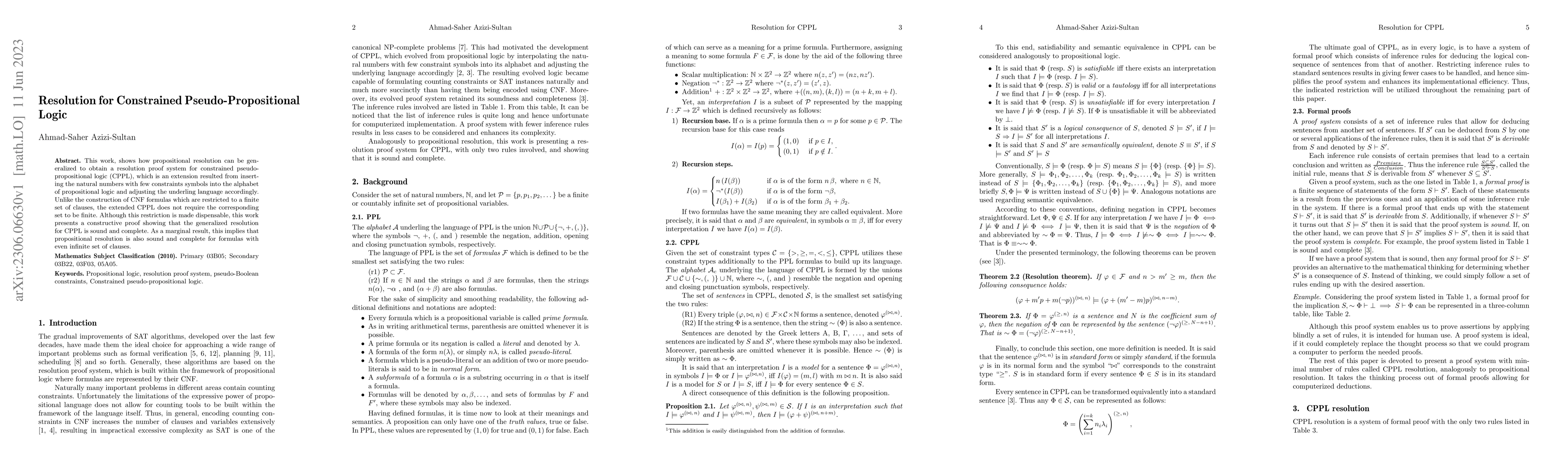 This paper presents a generalized resolution proof system for constrained pseudo-propositional logic (CPPL), extending propositional logic with natural numbers and constraints. The authors demonstrate that the generalized resolution is both sound and complete, implying that propositional resolution remains valid even for formulas with an infinite set of clauses.