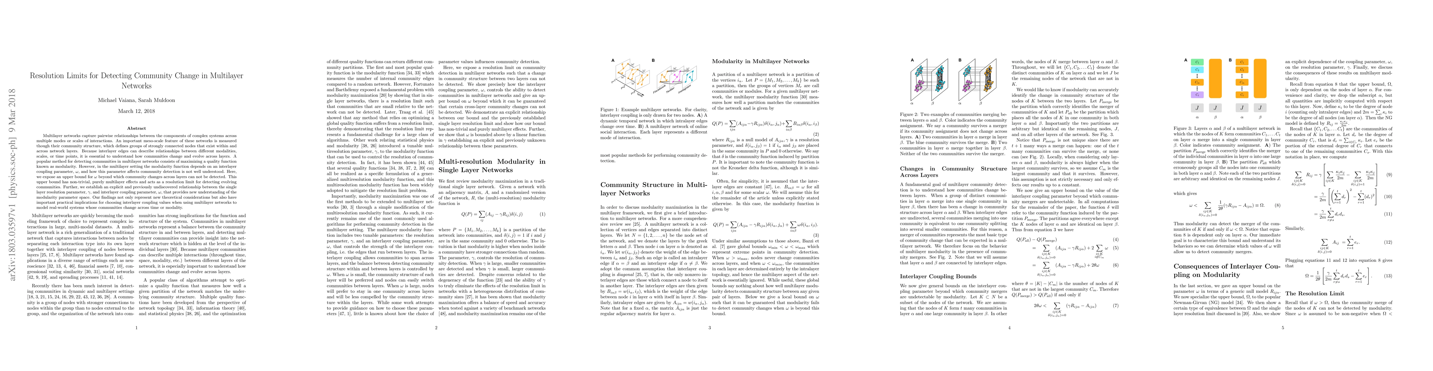 This paper identifies an upper bound for the interlayer coupling parameter $\omega$ in multilayer networks, beyond which community changes across layers cannot be detected, establishing a resolution limit. It also reveals a new relationship between $\omega$ and the single layer resolution parameter $\gamma$, offering deeper insights into the modularity parameter space.