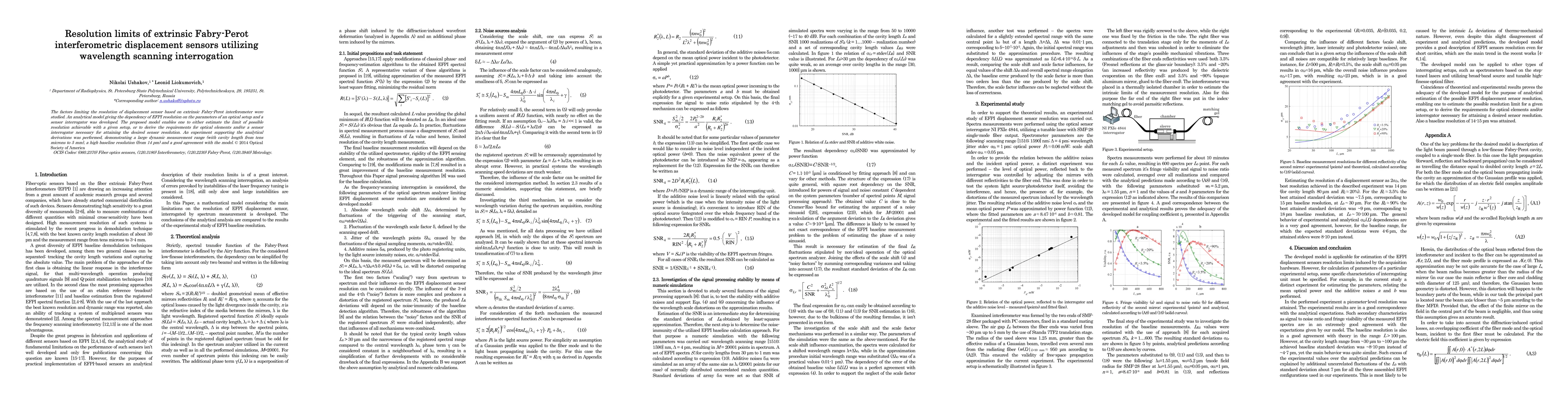 This paper develops an analytical model to determine the resolution limits of extrinsic Fabry-Perot interferometric displacement sensors using wavelength scanning. The model provides insights into achieving desired resolution and was validated experimentally, showing high resolution and a wide measurement range.