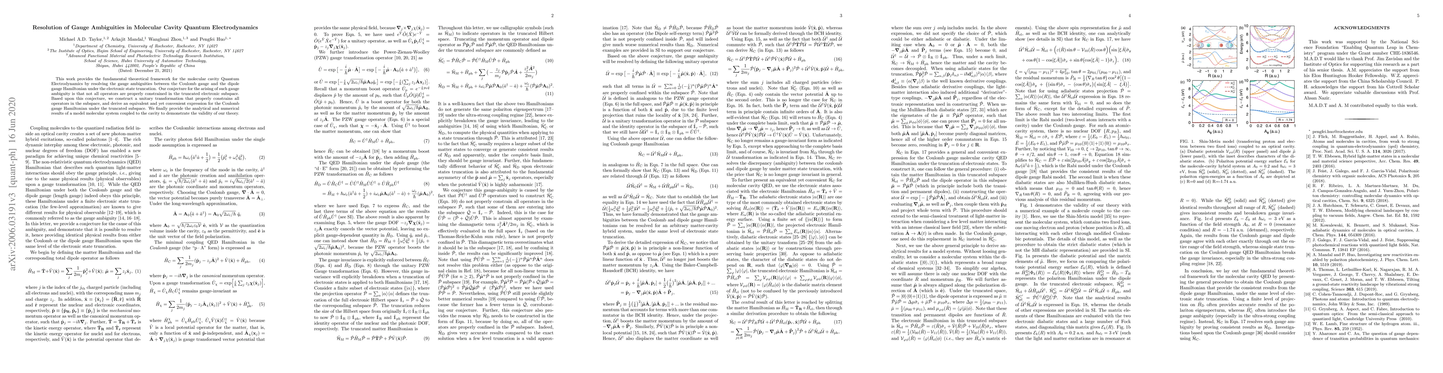 This paper resolves gauge ambiguities in molecular cavity Quantum Electrodynamics by constructing a unitary transformation that constrains all operators in a truncated electronic subspace, deriving an equivalent Coulomb gauge Hamiltonian, and validating the theory through analytical and numerical results for a model molecular system.