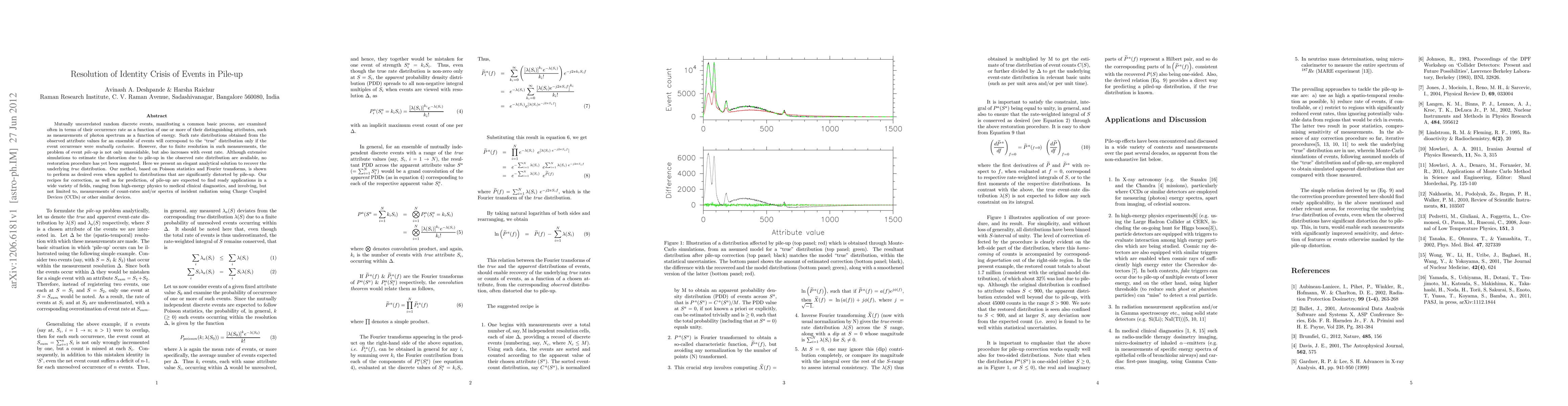 This paper presents an analytical solution to resolve the identity crisis caused by pile-up in the measurement of mutually uncorrelated random discrete events, using Poisson statistics and Fourier transforms. The proposed method effectively recovers the true underlying distribution even in significantly distorted cases, with applications across various fields including high-energy physics and medical diagnostics.