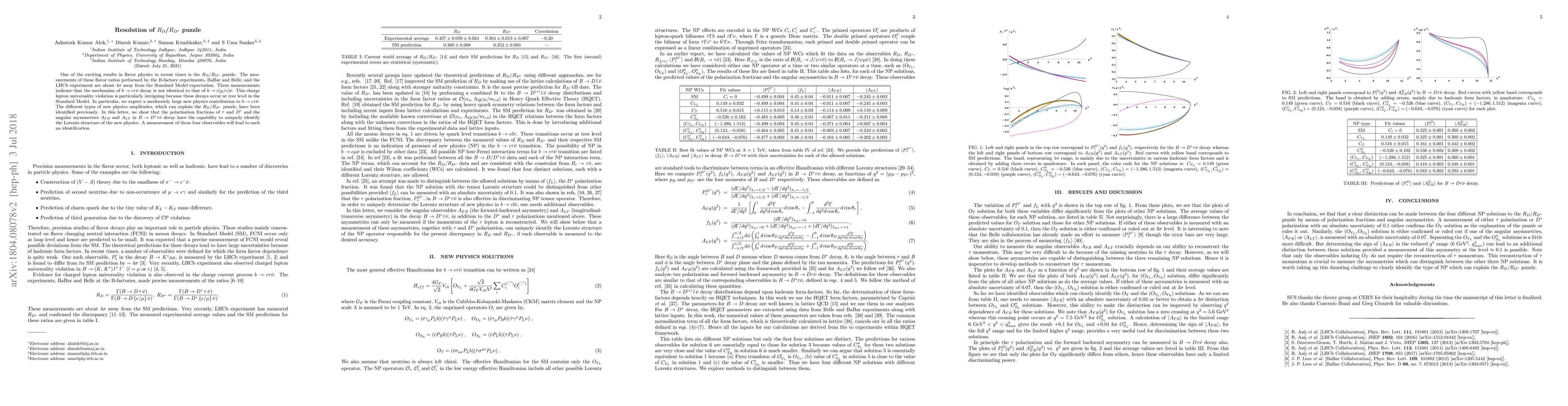 This paper addresses the $R_D$/$R_{D^*}$ puzzle in flavor physics, where experimental measurements deviate significantly from Standard Model predictions, suggesting new physics contributions. The study identifies polarization fractions and angular asymmetries in $B\rightarrow D^*\tau\bar{\nu}$ decay as key observables to uniquely determine the underlying Lorentz structure of the new physics.