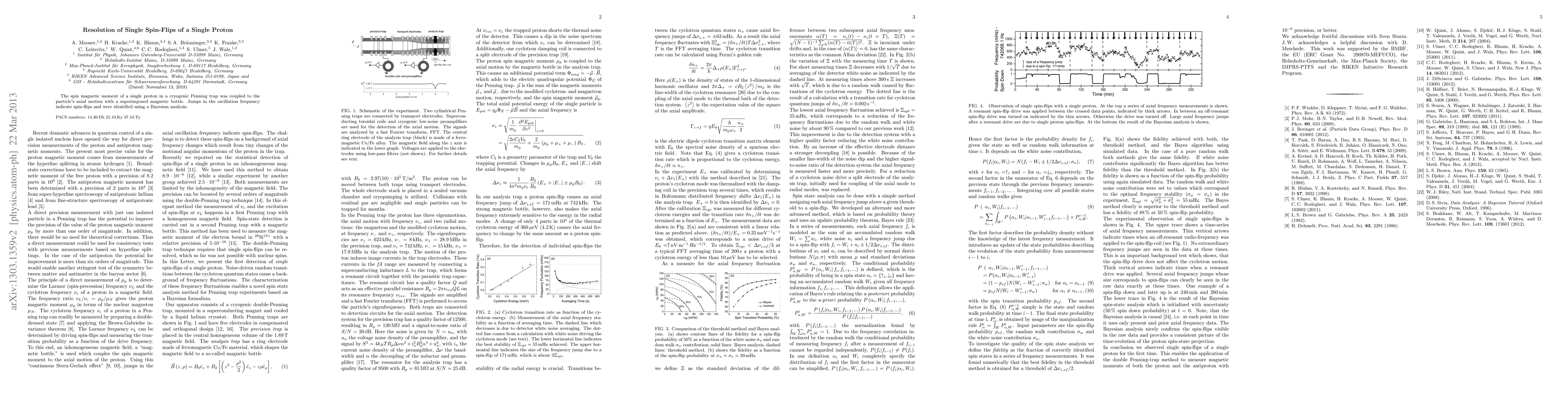 The spin magnetic moment of a single proton in a cryogenic Penning trap was coupled to the particle's axial motion with a superimposed magnetic bottle. Jumps in the oscillation frequency indicate spin-flips and were identified using a Bayesian analysis.