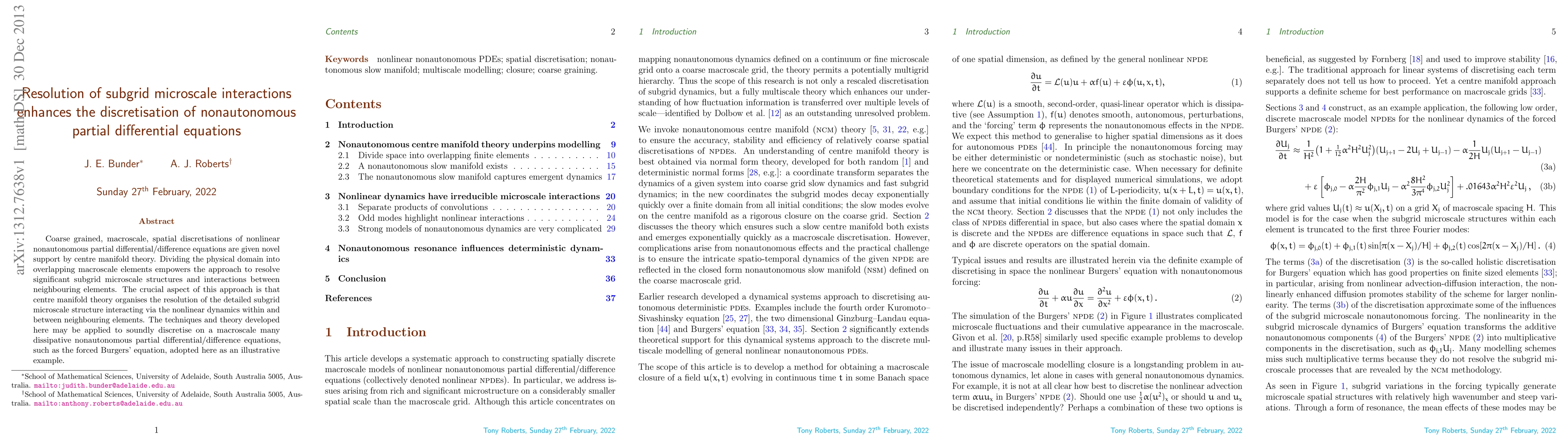 This research paper uses centre manifold theory to improve the discretization of nonlinear partial differential equations by resolving subgrid microscale interactions, enabling accurate simulations of complex systems like the forced Burgers' equation.