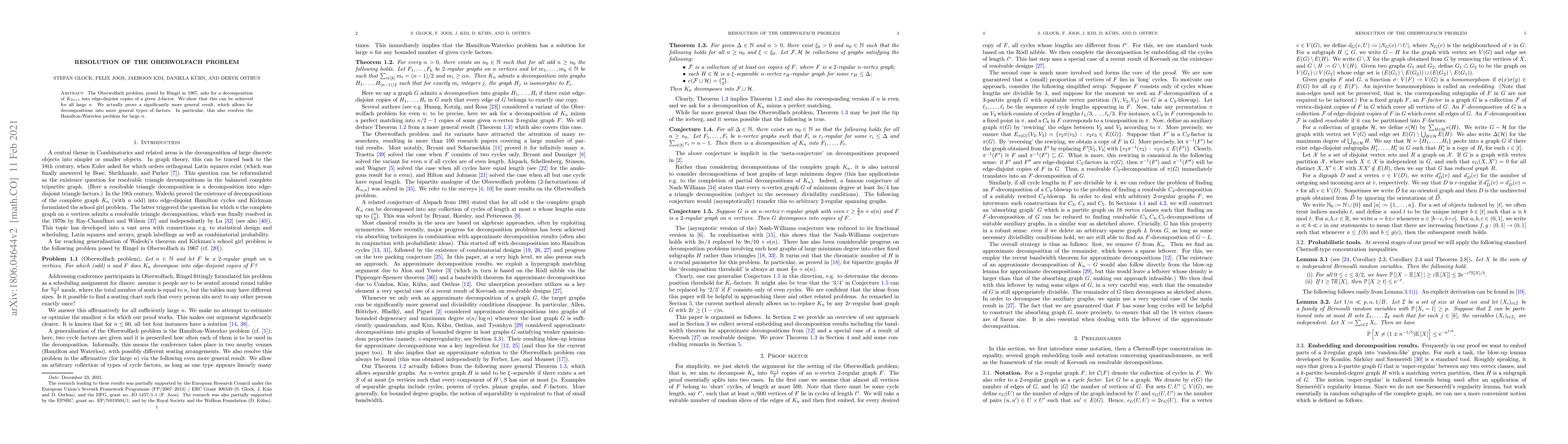 The Oberwolfach problem, which seeks to decompose $K_{2n+1}$ into edge-disjoint copies of a given $2$-factor, is resolved for large $n$. The study also proves a more general result applicable to various types of factors, thereby solving the Hamilton-Waterloo problem for large $n$.