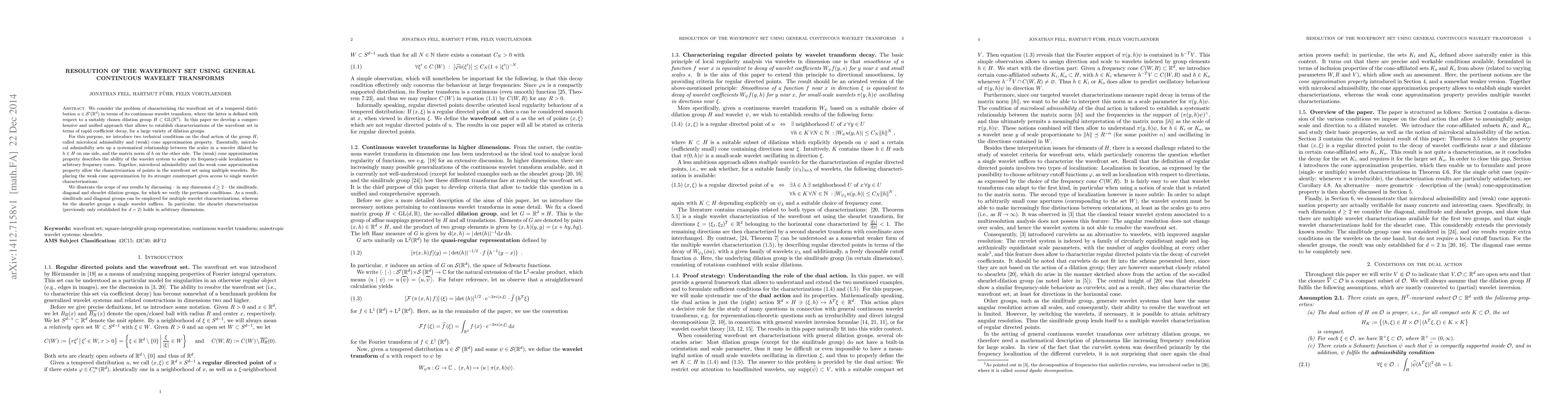 This paper develops a unified approach to characterize the wavefront set of a tempered distribution using continuous wavelet transforms defined by a dilation group. It introduces technical conditions, microlocal admissibility and the cone approximation property, to enable characterizations using multiple or single wavelets, illustrated through similitude, diagonal, and shearlet groups.