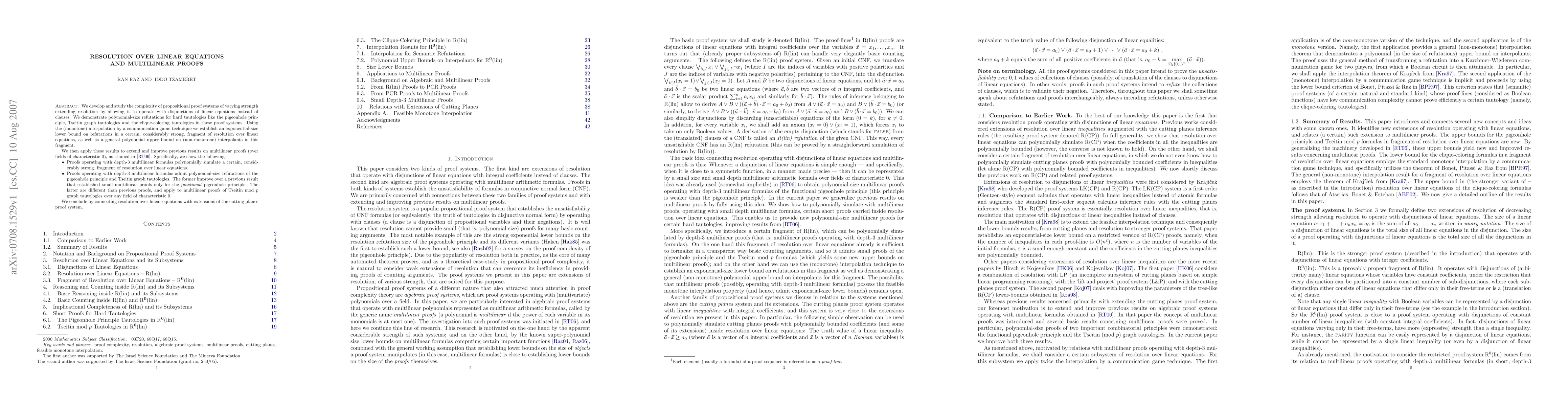 This paper investigates proof systems extending resolution to handle disjunctions of linear equations, demonstrating polynomial-size refutations for complex tautologies. It also establishes an exponential lower bound for a strong fragment and proves polynomial upper bounds on interpolants. The research extends to multilinear proofs, showing polynomial simulations and improved refutations for the pigeonhole principle and Tseitin graph tautologies.