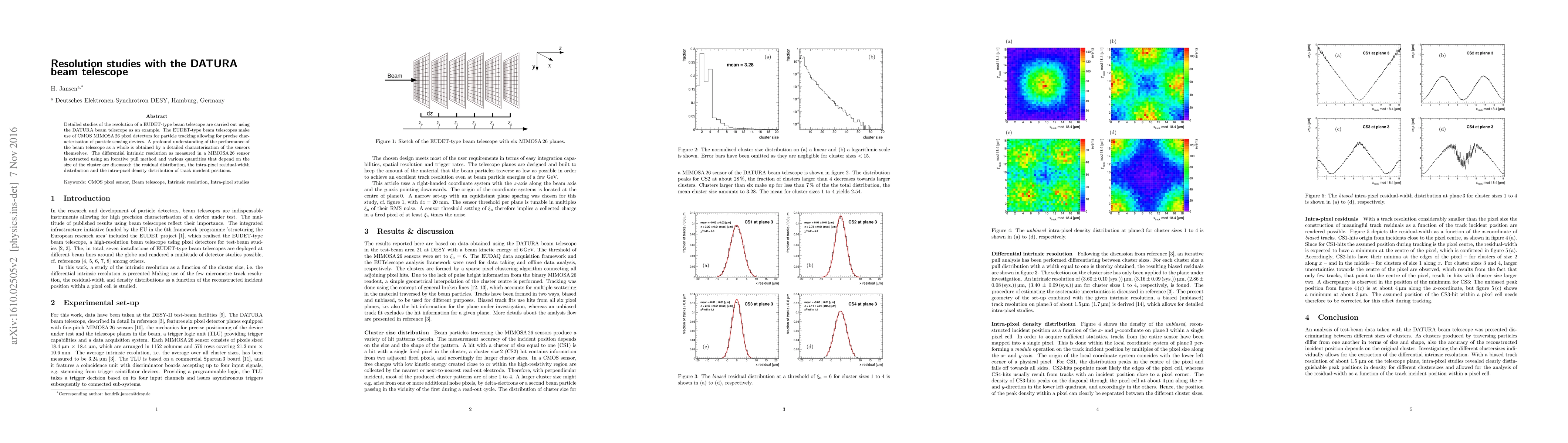 This paper investigates the resolution of EUDET-type beam telescopes using the DATURA beam telescope, focusing on CMOS MIMOSA 26 pixel detectors for particle tracking. It employs an iterative pull method to extract the differential intrinsic resolution and discusses various cluster size-dependent quantities, including residual distribution and intra-pixel residual-width distribution.