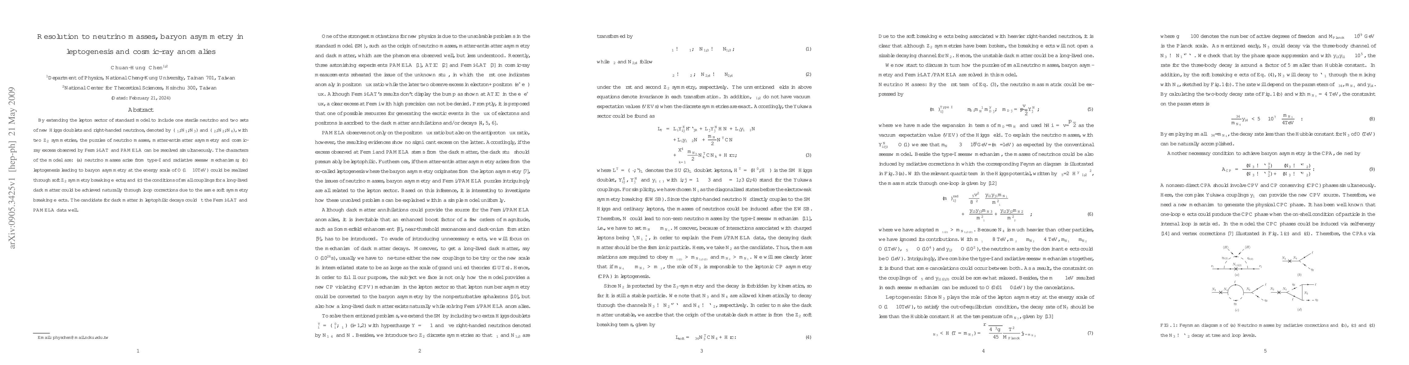 By extending the lepton sector of standard model to include one sterile neutrino and two sets of new Higgs doublets and right-handed neutrinos, denoted by $(\eta_1, N_1, N_3)$ and $(\eta_2, N_2, N_4)$, with two $Z_2$ symmetries, the puzzles of neutrino masses, matter-antimatter asymmetry and cosmic-ray excess observed by Fermi-LAT and PAMELA can be resolved simultaneously. The characters of the model are: (a) neutrino masses arise from type-I and radiative seesaw mechanisms; (b) leptogenesis leading to baryon asymmetry at the energy scale of $O(1- 10\rm TeV)$ could be realized through soft $Z_2$ symmetry breaking effects; and (c) the conditions of small couplings for a long-lived dark matter could be achieved naturally through loop corrections due to the same soft symmetry breaking effects. The candidate for dark matter in leptophilic decays could fit the Fermi-LAT and PAMELA data well.