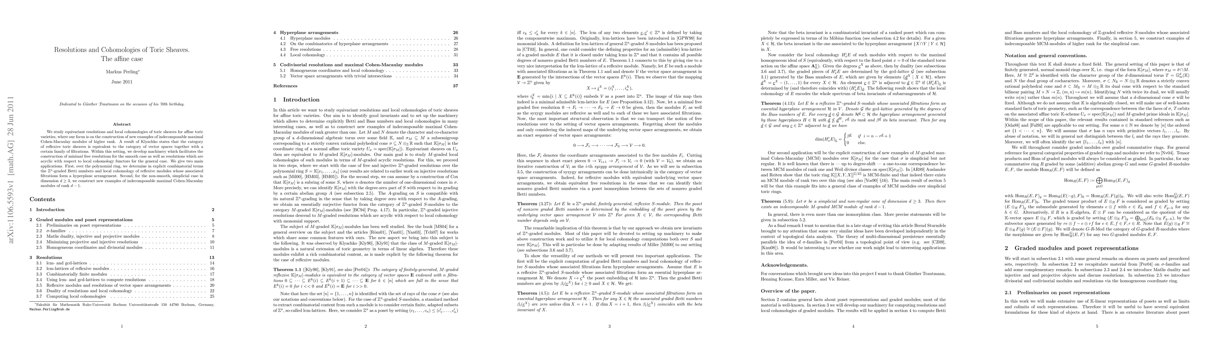 This paper explores equivariant resolutions and local cohomologies of toric sheaves in affine toric varieties, constructing new examples of high-rank decomposable maximal Cohen-Macaulay modules. It develops methods for minimal free resolutions in smooth cases and acyclic resolutions for general cases, providing explicit graded Betti numbers and local cohomology for reflexive modules and new indecomposable modules for non-smooth simplicial cases.
