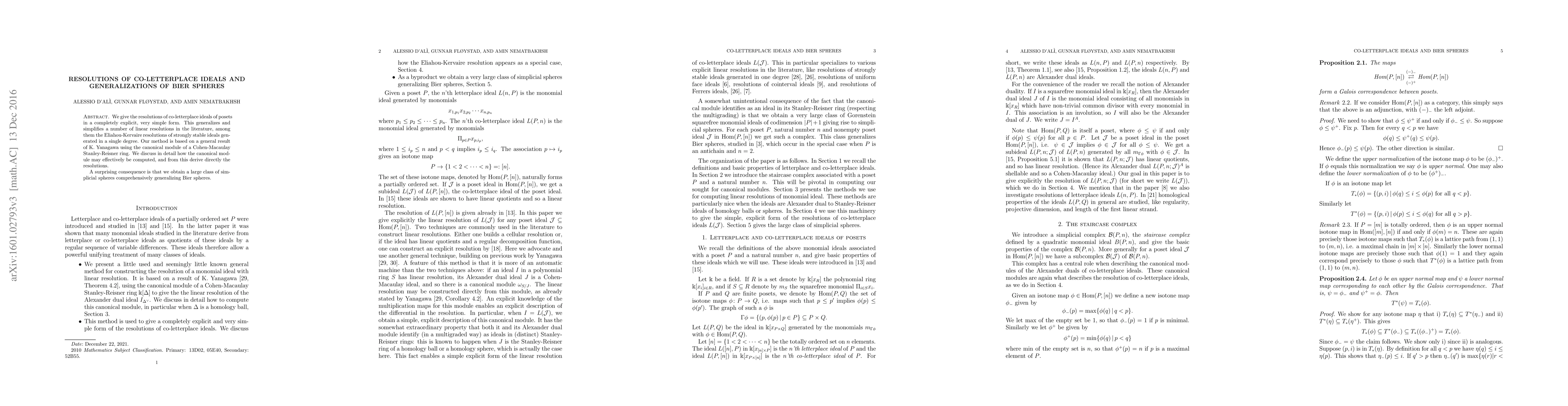 This paper presents explicit resolutions for co-letterplace ideals of posets, simplifying existing linear resolutions, including those by Eliahou-Kervaire. The method leverages K. Yanagawa’s result on the canonical module of Cohen-Macaulay Stanley-Reisner rings, leading to a comprehensive generalization of Bier spheres.