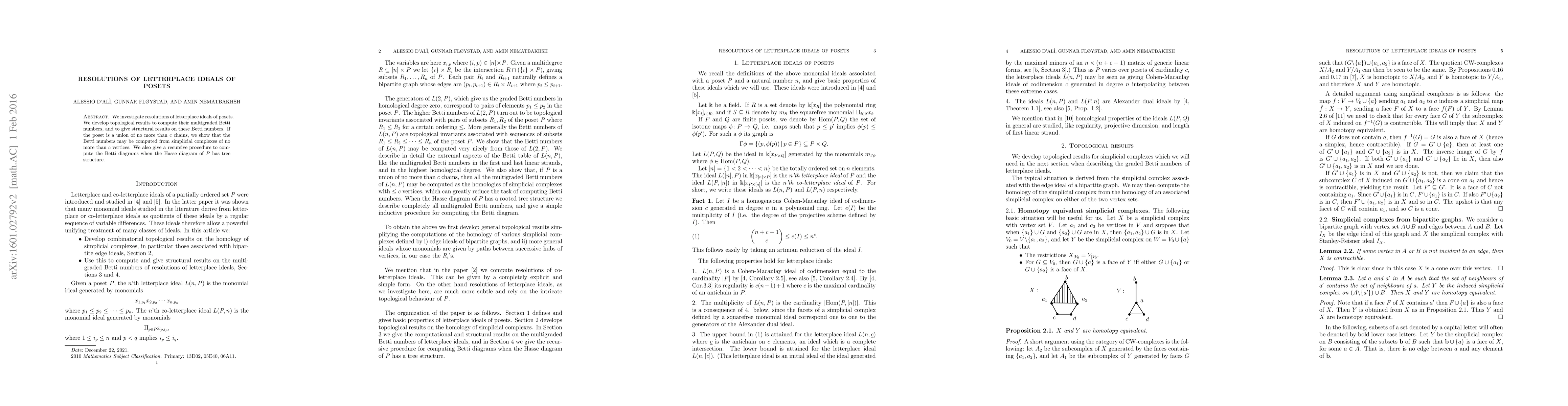This paper explores resolutions of letterplace ideals associated with posets, employing topological methods to determine their multigraded Betti numbers. It provides a recursive procedure for computing Betti diagrams in tree-structured Hasse diagrams and shows that for posets composed of up to $c$ chains, Betti numbers can be computed from simplicial complexes with no more than $c$ vertices.