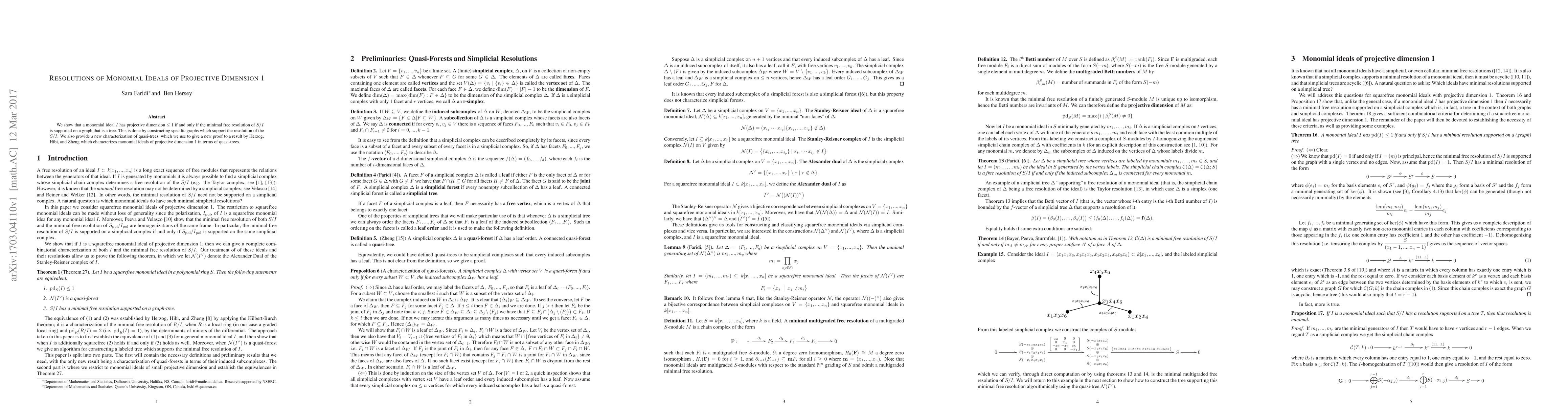 This paper establishes that a monomial ideal $I$ has projective dimension $\leq$ 1 if its minimal free resolution is supported on a tree graph. It also introduces a new characterization of quasi-trees to provide an alternative proof for Herzog, Hibi, and Zheng's result on monomial ideals of projective dimension 1.