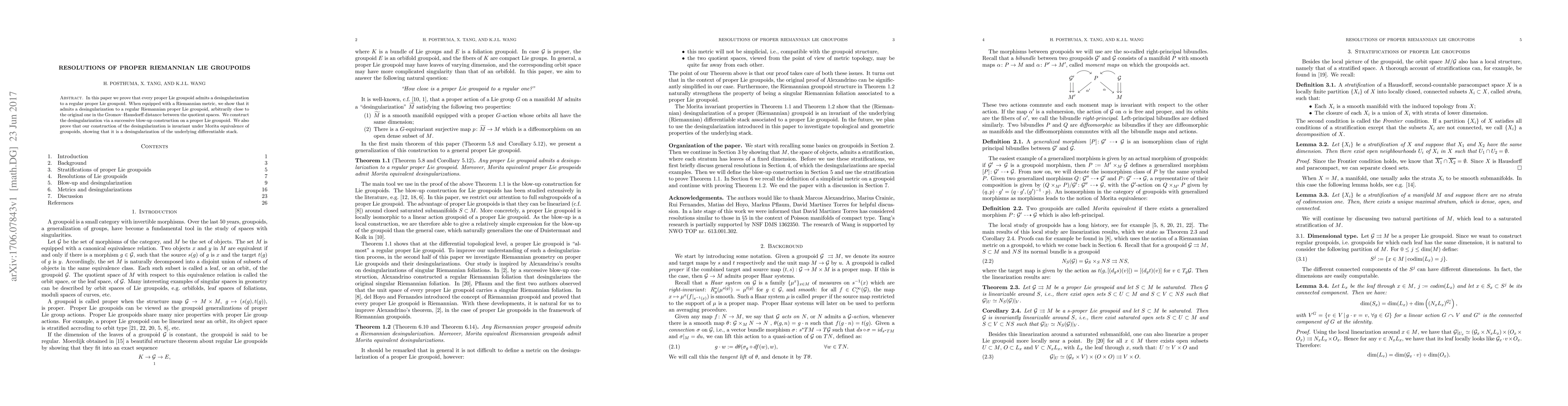 This paper demonstrates that any proper Lie groupoid can be desingularized into a regular proper Lie groupoid and, when equipped with a Riemannian metric, into a regular Riemannian proper Lie groupoid, closely matching the original in Gromov-Hausdorff distance. The desingularization is achieved through a blow-up construction and remains consistent under Morita equivalence.