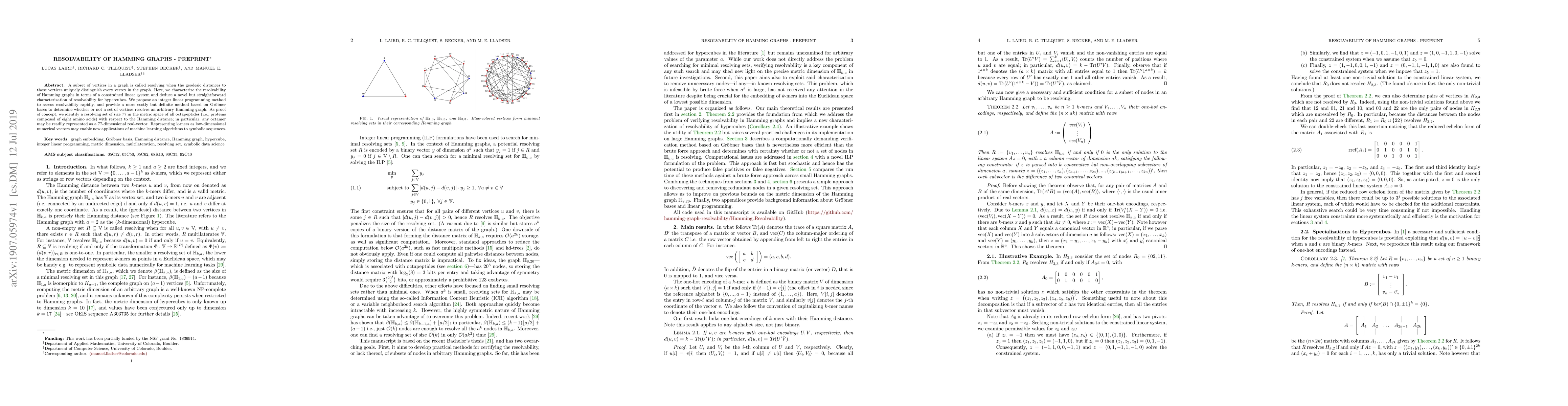This paper characterizes the resolvability of Hamming graphs using a constrained linear system and proposes methods, including integer linear programming and Gr\"obner bases, to determine resolvability. It demonstrates a resolving set for octapeptides, suggesting potential applications of machine learning to symbolic sequences.