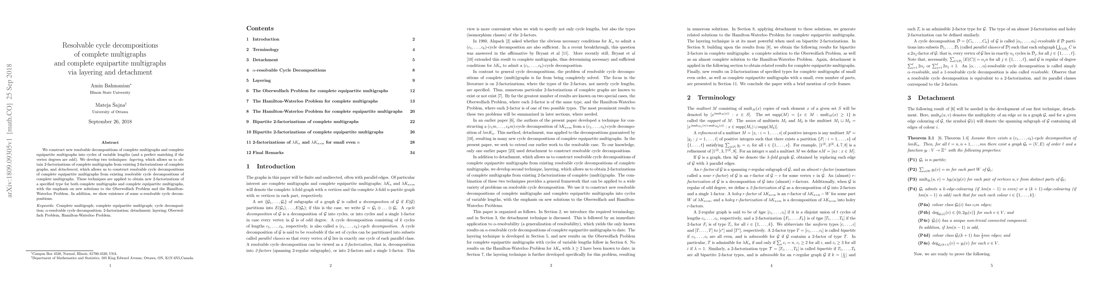 This paper introduces new techniques for decomposing complete multigraphs and complete equipartite multigraphs into cycles using layering and detachment methods, focusing on achieving new solutions for the Oberwolfach and Hamilton-Waterloo Problems and proving the existence of $\alpha$-resolvable cycle decompositions.