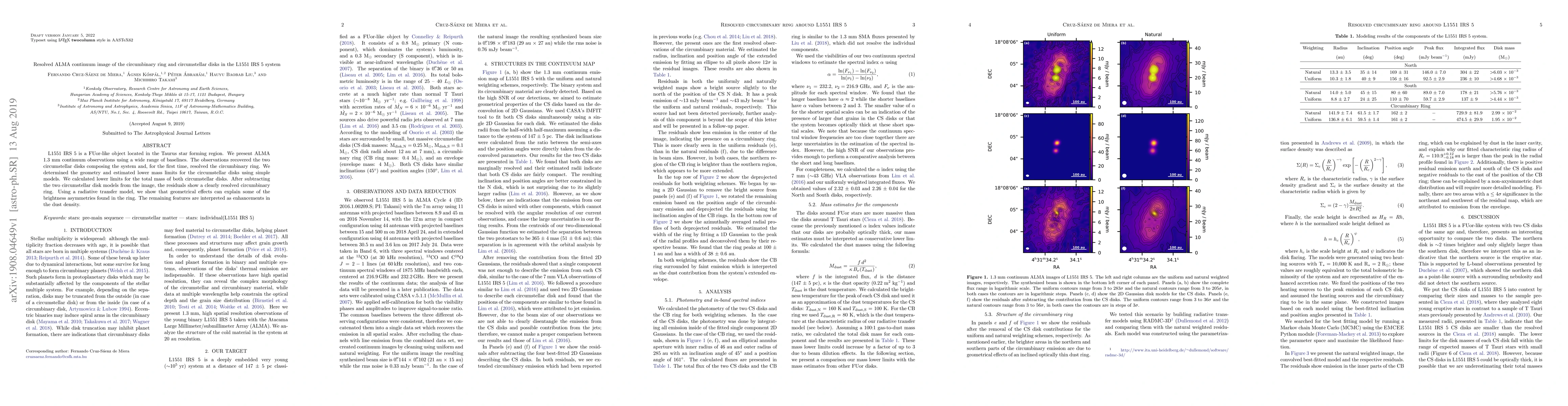 L1551 IRS 5 is a FUor-like object located in the Taurus star forming region. We present ALMA 1.3 mm continuum observations using a wide range of baselines. The observations recovered the two circumstellar disks composing the system and, for the first time, resolved the circumbinary ring. We determined the geometry and estimated lower mass limits for the circumstellar disks using simple models. We calculated lower limits for the total mass of both circumstellar disks. After subtracting the two circumstellar disk models from the image, the residuals show a clearly resolved circumbinary ring. Using a radiative transfer model, we show that geometrical effects can explain some of the brightness asymmetries found in the ring. The remaining features are interpreted as enhancements in the dust density.