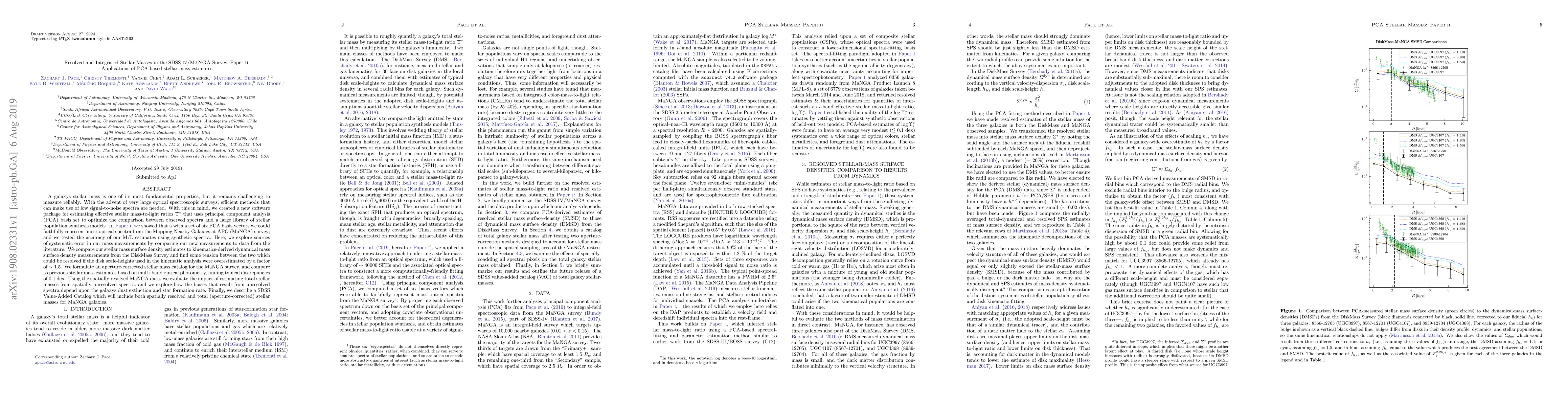 This paper introduces a PCA-based software package for estimating stellar mass-to-light ratios in galaxies from the MaNGA survey, comparing its results to literature data and finding discrepancies that suggest potential overestimation in disk scale-heights. It also discusses the impact of dust extinction and star formation rate on mass estimation biases.