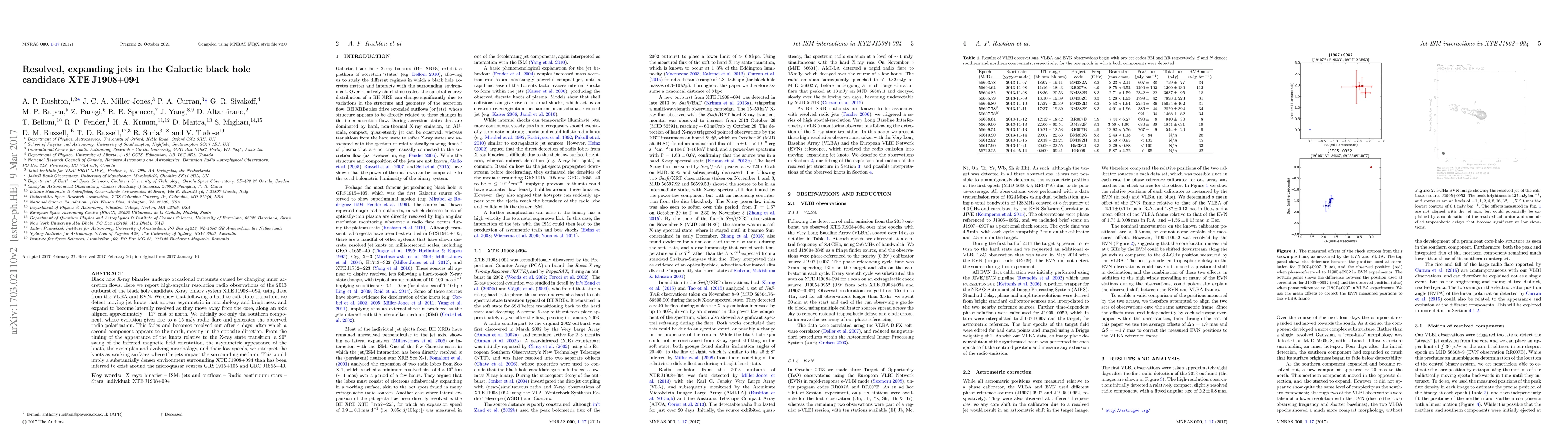 This paper reports high-resolution radio observations of the 2013 outburst of the black hole candidate XTE J1908+094, revealing expanding, asymmetric jet knots that suggest a denser environment than previously inferred around similar microquasars. The evolving morphology and low speeds of the knots indicate they are working surfaces where jets impact the surrounding medium.