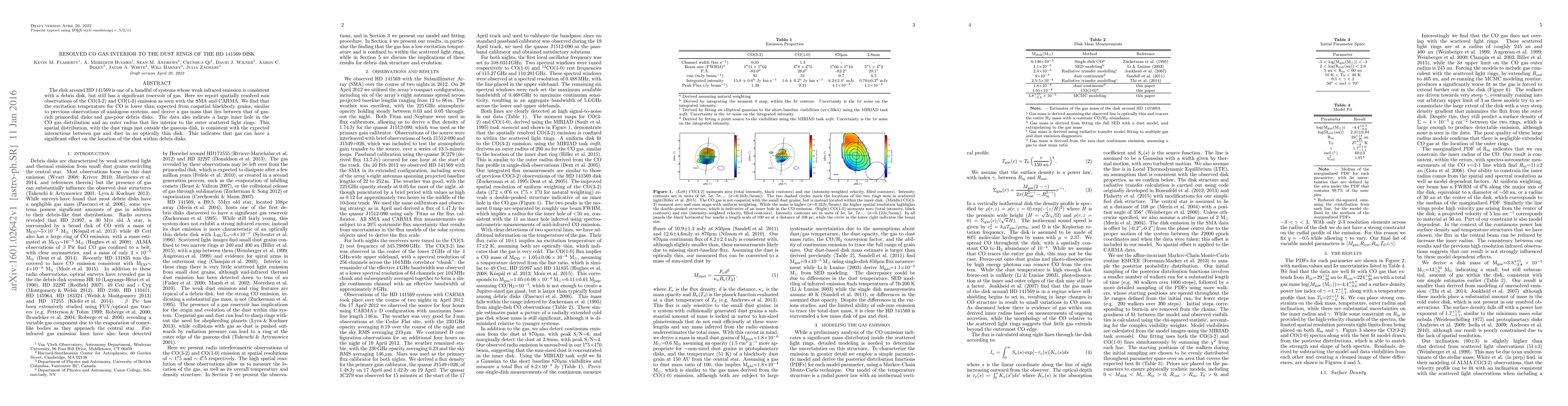 The disk around HD 141569 is one of a handful of systems whose weak infrared emission is consistent with a debris disk, but still has a significant reservoir of gas. Here we report spatially resolved mm observations of the CO(3-2) and CO(1-0) emission as seen with the SMA and CARMA. We find that the excitation temperature for CO is lower than expected from cospatial blackbody grains, similar to previous observations of analogous systems, and derive a gas mass that lies between that of gas-rich primordial disks and gas-poor debris disks. The data also indicate a large inner hole in the CO gas distribution and an outer radius that lies interior to the outer scattered light rings. This spatial distribution, with the dust rings just outside the gaseous disk, is consistent with the expected interactions between gas and dust in an optically thin disk. This indicates that gas can have a significant effect on the location of the dust within debris disks.
