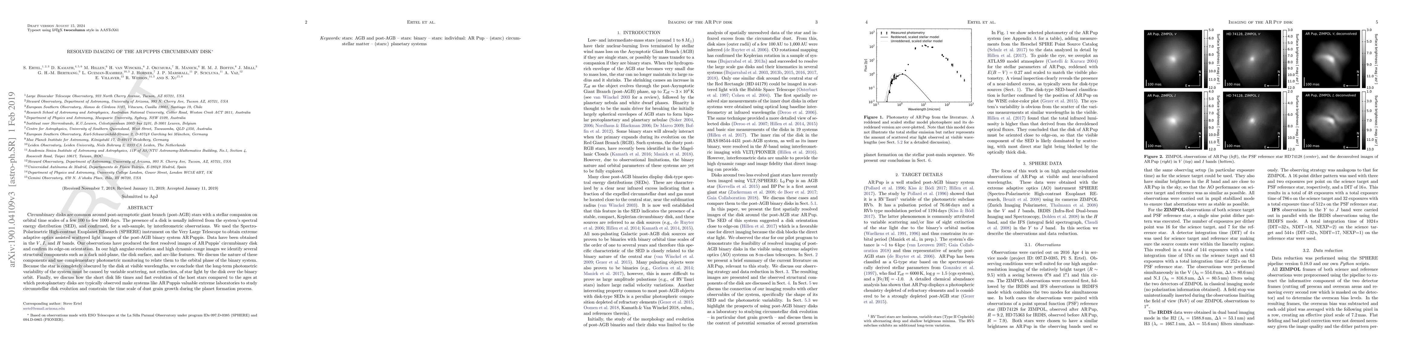 The research paper presents the first resolved images of the circumbinary disk around the post-AGB binary system AR Puppis, using the SPHERE instrument on the Very Large Telescope. The edge-on disk orientation is confirmed, revealing structural components like a dark mid-plane, disk surface, and arc-like features. The study concludes that the system's long-term photometric variability is due to variable scattering of starlight by the disk, not extinction, making AR Puppis a valuable laboratory for studying circumstellar disk evolution and constraining dust grain growth during planet formation.