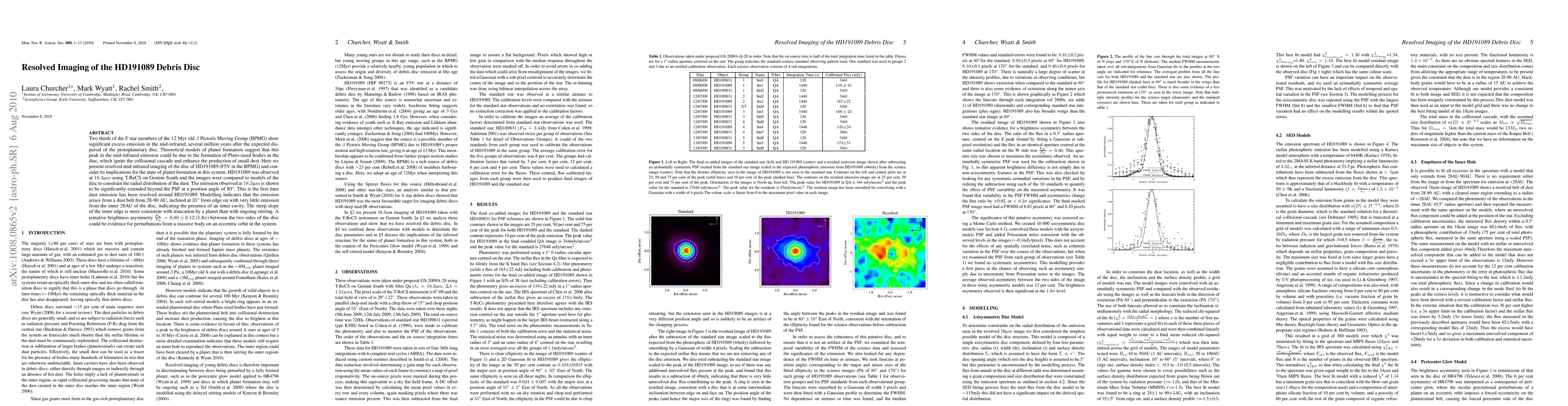 Two thirds of the F star members of the 12 Myr old Beta Pictoris Moving Group (BPMG) show significant excess emission in the mid-infrared, several million years after the expected dispersal of the protoplanetary disc. Theoretical models of planet formation suggest that this peak in the mid-infrared emission could be due to the formation of Pluto-sized bodies in the disc, which ignite the collisional cascade and enhance the production of small dust. Here we present resolved mid-infrared imaging of the disc of HD191089 (F5V in the BPMG) and consider its implications for the state of planet formation in this system. HD191089 was observed at 18.3 microns using T-ReCS on Gemini South and the images were compared to models of the disc to constrain the radial distribution of the dust. The emission observed at 18.3 microns is shown to be significantly extended beyond the PSF at a position angle of 80 degrees. This is the first time dust emission has been resolved around HD191089. Modelling indicates that the emission arises from a dust belt from 28-90 AU, inclined at 35 degrees from edge on with very little emission from the inner 28AU of the disc, indicating the presence of an inner cavity. The steep slope of the inner edge is more consistent with truncation by a planet than with ongoing stirring. A tentative brightness asymmetry F(W)/F(E)=0.80+/-0.12 (1.8 sigma) between the two sides of the disc could be evidence for perturbations from a massive body on an eccentric orbit in the system.
