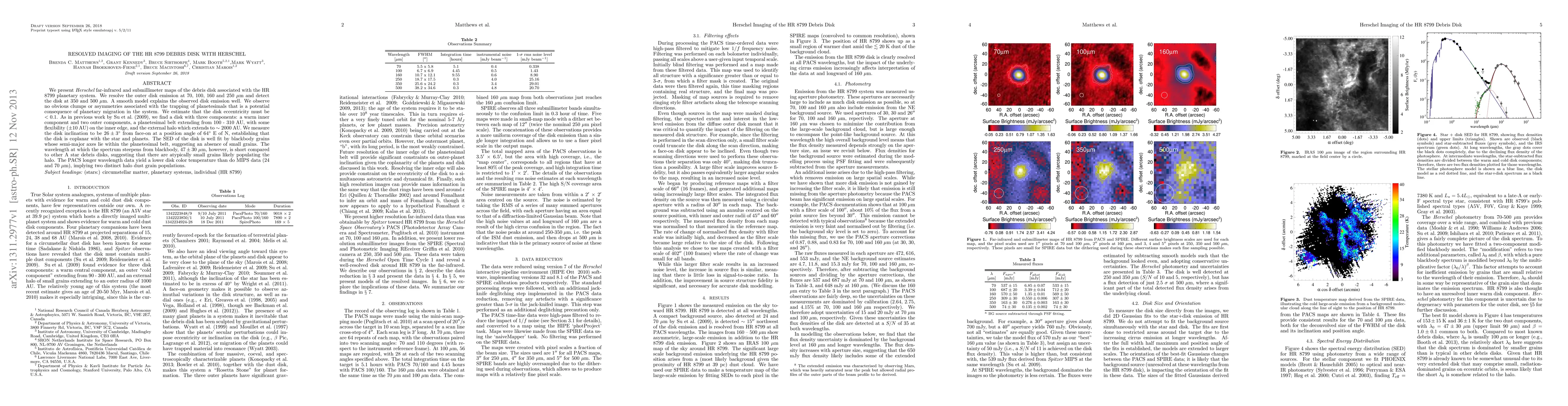 This study resolves the outer debris disk of the HR 8799 planetary system using Herschel telescope data, revealing a smooth disk with no obvious clumps or asymmetries, and suggesting an absence of small grains in the inner disk.