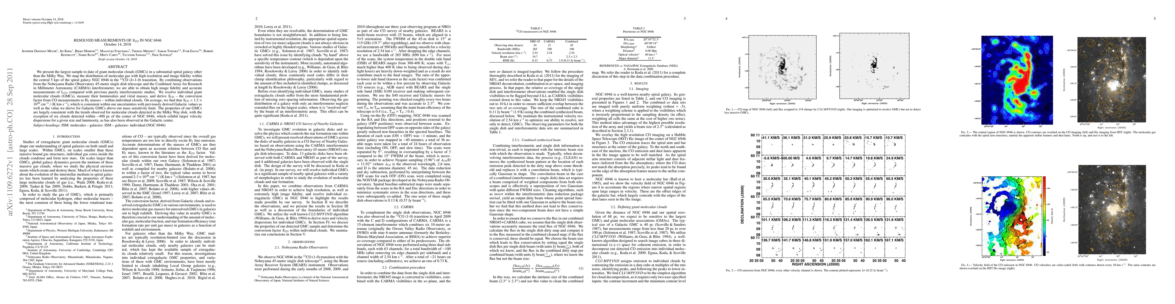 This paper presents high-resolution measurements of giant molecular clouds in the spiral galaxy NGC 6946, using combined observations from the Nobeyama Radio Observatory and CARMA. The study finds an average Xco conversion factor of 1.2 × 10^20 cm-2 / (K km s-1), consistent with Galactic values, with notable deviations in six clouds near the galaxy's center.