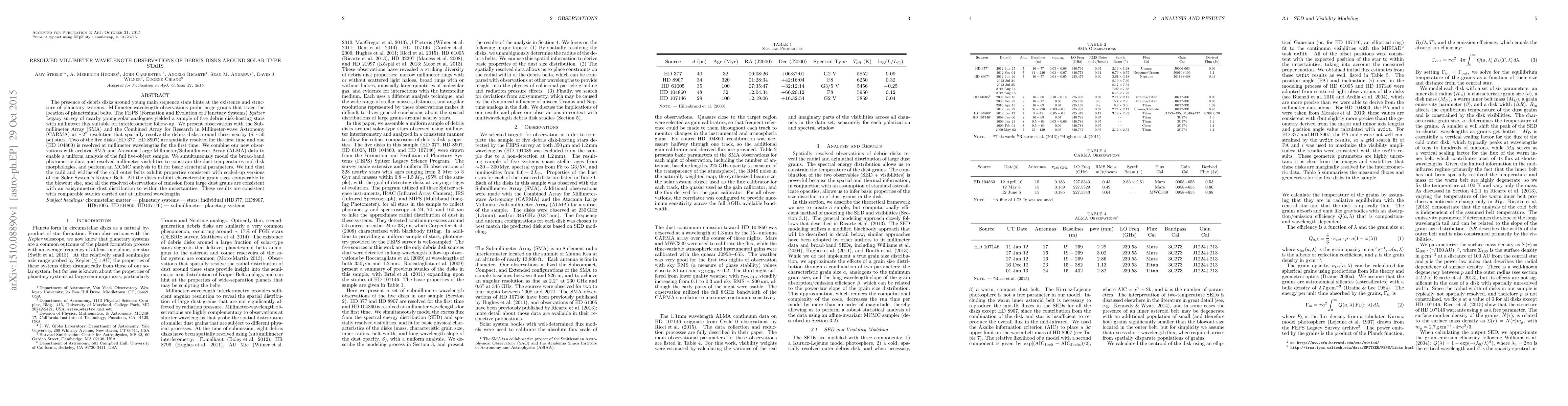 This study uses millimeter-wavelength observations to resolve the debris disks around five nearby solar-type stars, revealing structural similarities to the Kuiper Belt and consistent grain sizes. The resolved disks show an axisymmetric dust distribution, supporting the existence of planetesimal belts in these planetary systems.