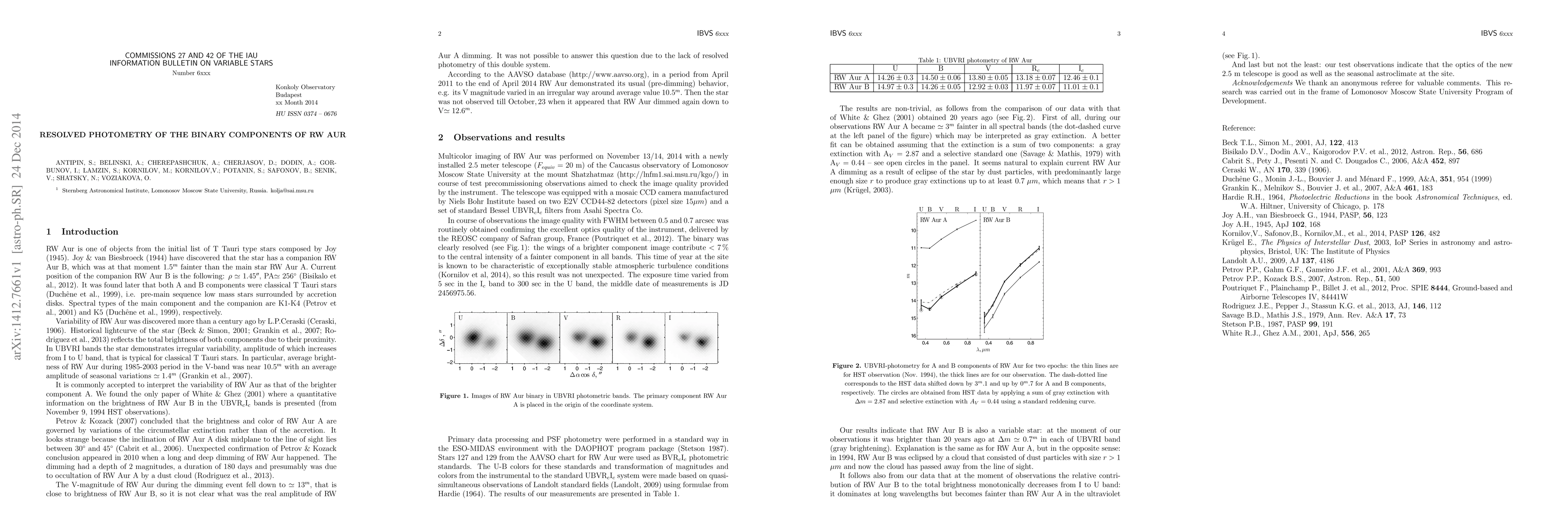 This study presents resolved UBVRI photometry of the RW Aur binary system during its deep dimming in 2014, revealing RW Aur A's significant fading compared to 1994, attributed to an eclipse by dust particles. Additionally, RW Aur B was found to be brighter in all bands, indicating a recent brightening over the past two decades.