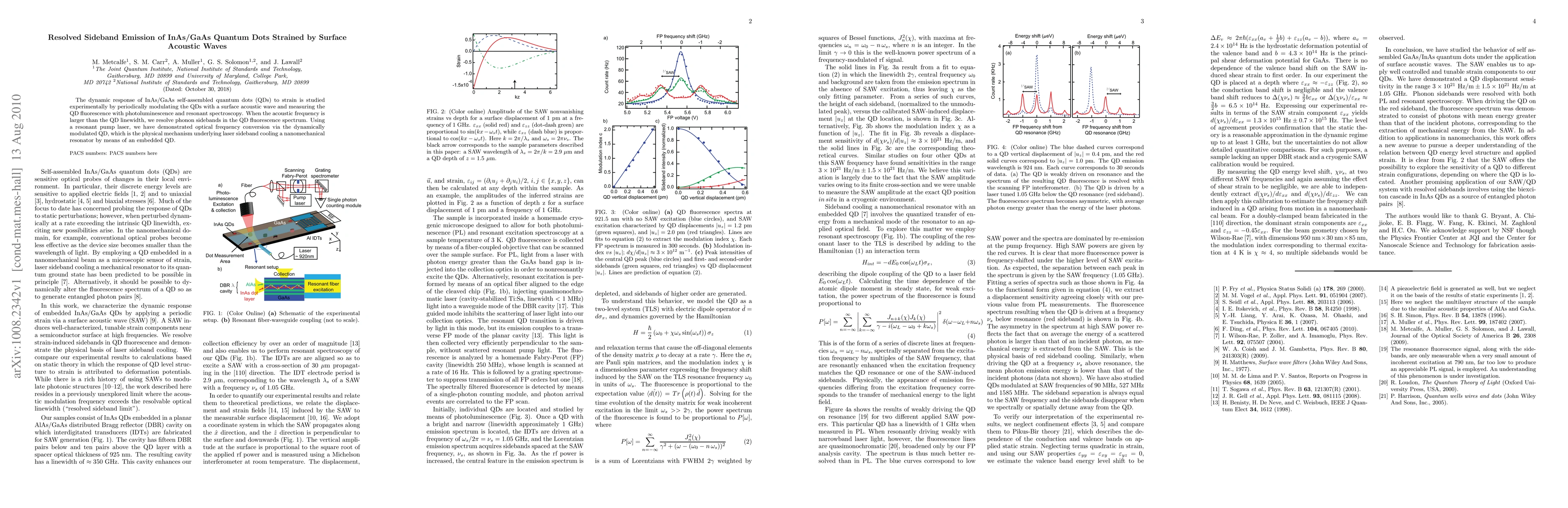 This paper investigates the dynamic strain response of InAs/GaAs quantum dots to surface acoustic waves, resolving phonon sidebands in fluorescence spectra when the acoustic frequency exceeds the QD linewidth. The study demonstrates optical frequency conversion through the modulated quantum dots, revealing a mechanism for laser sideband cooling of nanomechanical resonators.